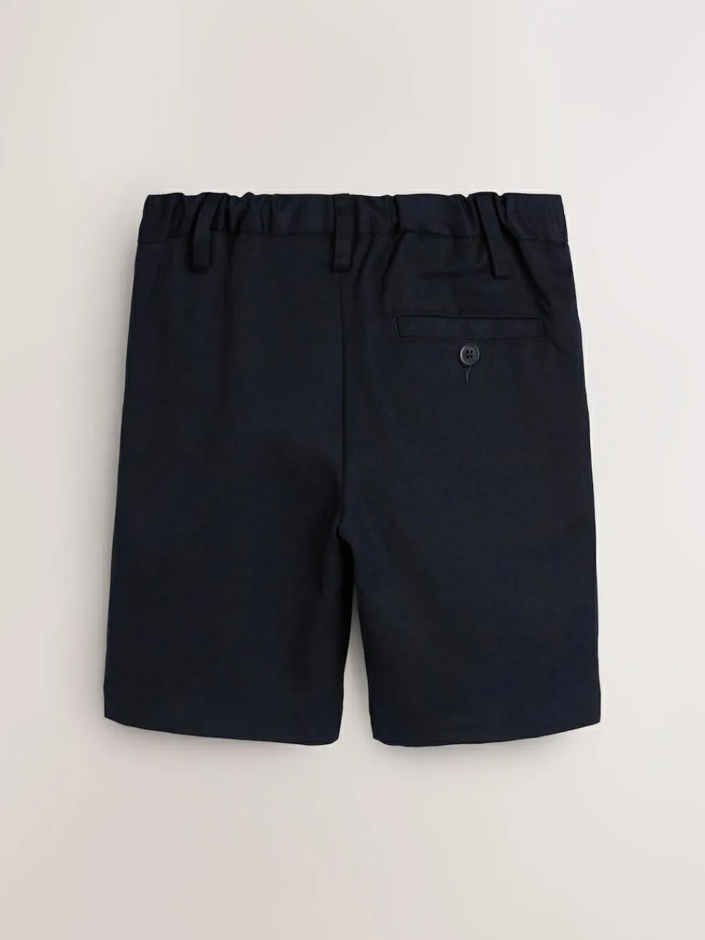 Keep him smart & stylish with these easy-to-wear pull-on navy blue school shorts. The mock fly front and easy pull-on style make these hassle-free to pop on and off and the adjustable waist ensures the perfect fit. Complete with an easy iron finish, these really are the perfect pair for his summer uniform.Key features Easy Iron Fabric – Handy easy-iron finish Teflon® Technology – a treatment that repels water and water-based stains for easy cleaning and quick drying Machine washable Flat front Pull-on waist Machine washable. 65% Recycled polyester, 35% LENZING™ ECOVERO™ Viscose.