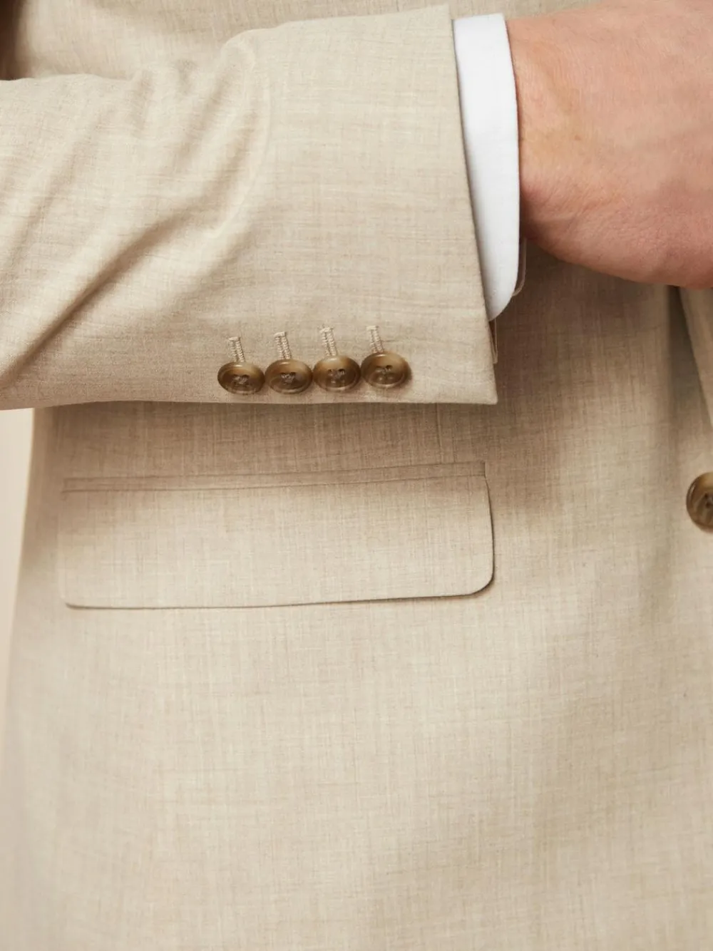 The skinny fit stone Motionflex stretch suit jacket seamlessly combines style with comfort, featuring a four-way stretch fabric that moves with you, making it perfect for busy days from desk to dinner. Its stone design adds a touch of modern sophistication, while the printed lining provides an unexpected pop of style when you take it off. Internal pockets keep your essentials secure and discreetly stowed. Plus, the availability of a matching three-piece suit ensures you can upscale your look for any formal occasion without sacrificing comfort. Stretch suit jacket Skinny fit Printed lining Notched lapel Four way stretch Check out The Suit Shop for more inspiration: https://www.next.co.uk/men/the-suit-shop Main 62% Recycled polyester, 33% Viscose, 5% Elastane. Lining 100% Recycled polyester.