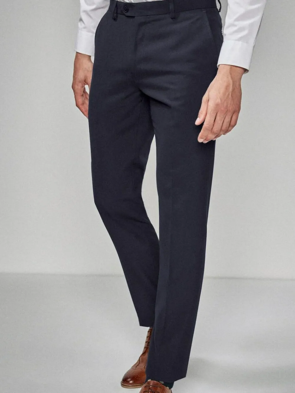 Cut with a plain front for a clean line, these lightweight trousers are a great addition to your workwear wardrobe. Made from a soft polyester blend that’ll keep you cool under pressure, they feature a zip-fly fastening and button-through back pockets. Team with matching pieces for a sleek silhouette at the office, or create a relaxed date night look with a few casual tweaks. Linings may vary from image. Tailored suit trousers Zip fly Button through back pockets Check out The Suit Shop for more inspiration – https://www.next.co.uk/men/the-suit-shop Machine washable. 62% Recycled polyester, 35% Viscose, 3% Polyester. To view our Men’s Suit Fit Guide CLICK HERE Styles available in our Tall range can be identified by this symbol. Designed with the taller guy in mind, extra length is added in the sleeve, body and leg of garments.
