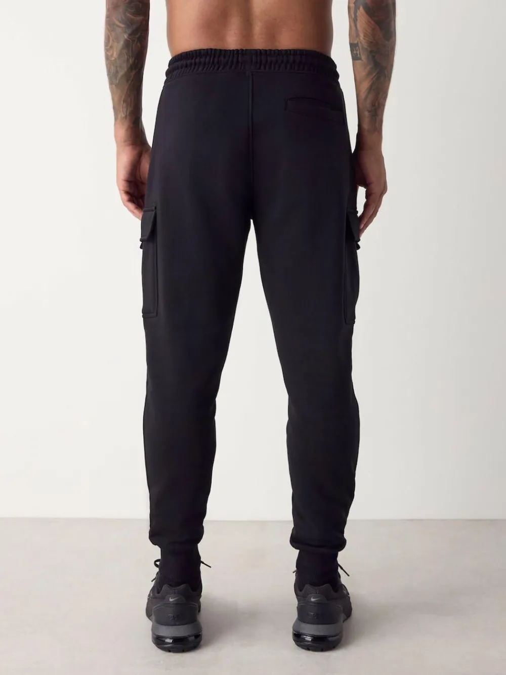 These Black Slim Fit Cargo Joggers are a comfortable and practical update to your casual wardrobe. Crafted from a soft handle, cotton-rich fabric, they ensure all-day comfort. The modern slim fit tapers neatly, while the functional cargo pockets on the side add a utility-inspired, on-trend style. Finished with cuffed ankles and an adjustable drawcord waist, these joggers are the perfect blend of comfort and street style. Cotton rich Cargo pockets Soft handle Elasticated cuffs Machine washable. 80% Cotton, 20% Recycled polyester.