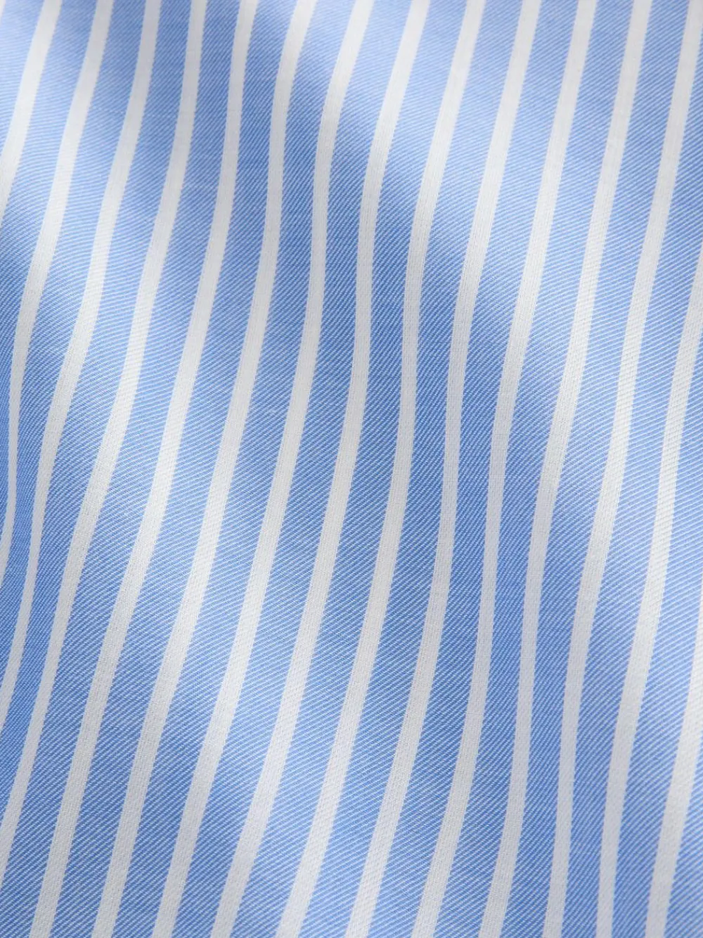 Dress to impress with our blue striped long-sleeved smart shirt. Crafted from a lightweight TENCEL™ and cotton blend, this long-sleeved button-down shirt is perfect for dressing up or down. The shirt features a button-up fastening, a V-shaped neckline and a classic collar. Relaxed shape Regular sizing Cotton-blend Button fastening V-neck collar Chest pocket Machine washable. 54% Cotton, 46% TENCEL™ lyocell. Items with the curve logo are available in sizes 18 and above.