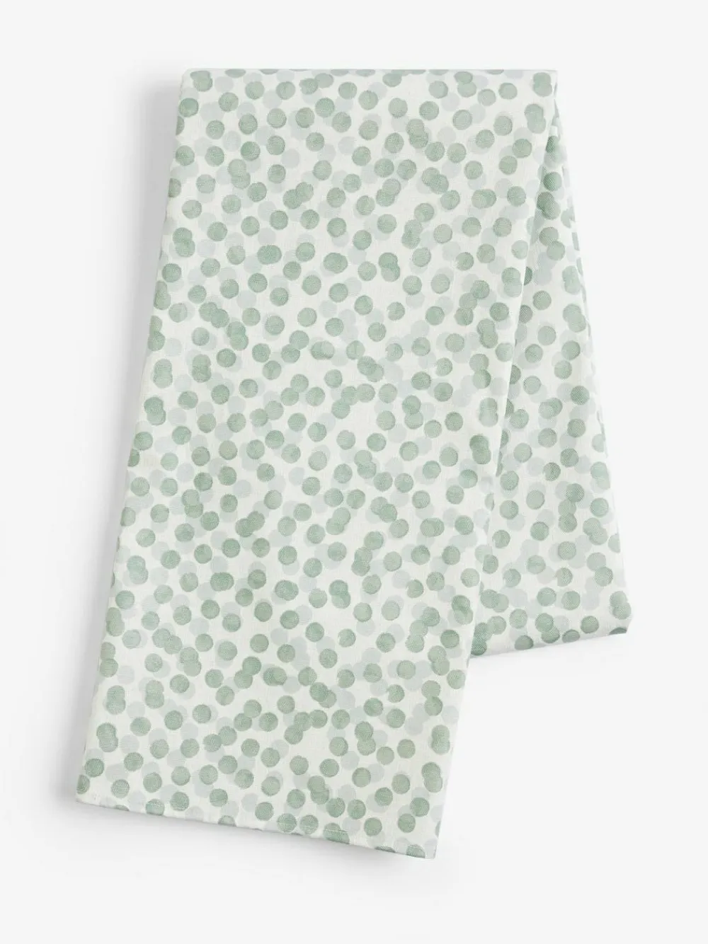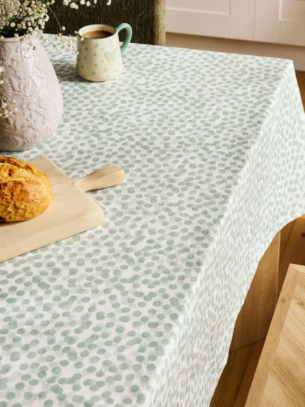 This 100% cotton wipe-clean tablecloth comes in a variety of sizes to suit any table and can be machine-washed. This sage green polka dot print is a fresh and modern update that can easily be added to any dining space. 100% cotton Polka dot Wipe clean Rec Small Length 137cm / Width 178cm Rec Large Length 137cm / Width 229cm Rec XL Length 160cm / Width 280cm Lge Round Length 160cm Machine washable. 100% Cotton.