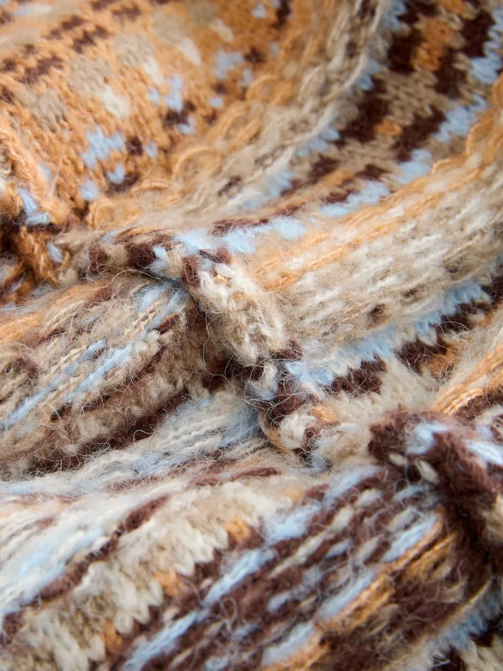 Snuggle up in this effortlessly stylish Fairisle pattern jumper featuring beautiful multi-neutral tones. The high stand neck and intricate stitchwork ensure warmth and texture for the cooler months. This versatile knitted piece is perfect for creating a cosy yet fashionable weekend look. Fairisle pattern stitch High stand neck Long sleeve Button fastening Knitted Machine washable. 72% Acrylic, 19% Recycled polyester, 9% Nylon.