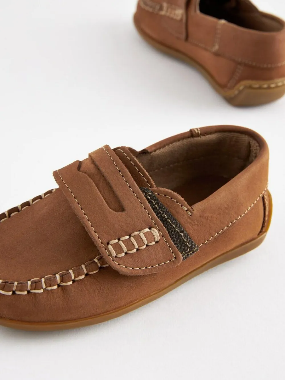 A smart style designed with comfort in mind, these Tan Brown penny loafers are made with a soft and breathable leather upper. Complete with a touch and close fastening for easy fitting.View the How to Measure and Fit at Home Guide Upper – Leather, Lining & Sock – Textile, Other Materials, Sole – Other Materials.