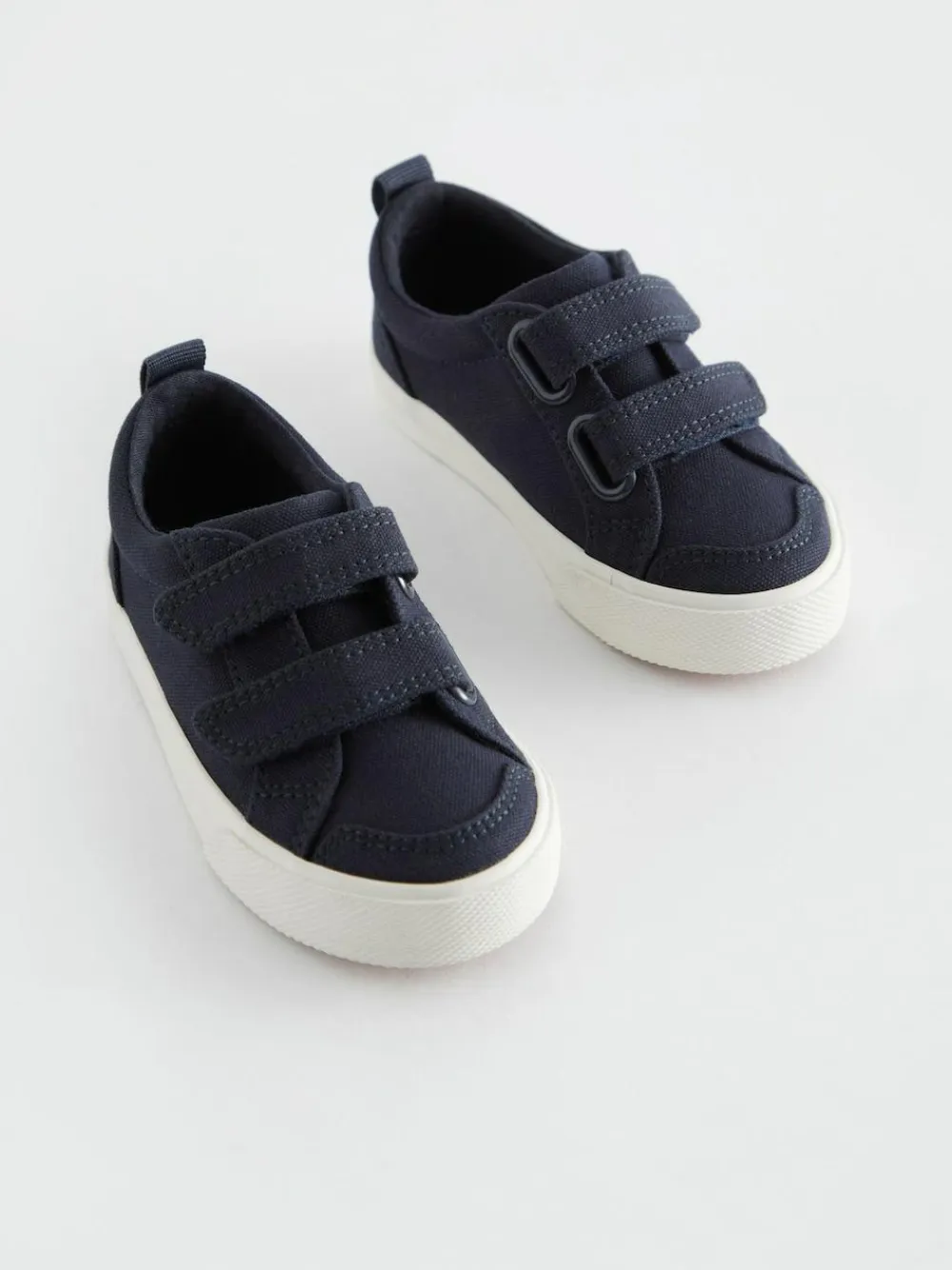 Make sure they’re stepping out in style and comfort with a pair of our navy canvas two strap touch fastening shoes. Designed with touch and close fastening straps to make getting them on and off a breeze, they are also adjustable to get the most comfortable fit. In a wide range of colours and designs, there is sure to be a pair to suit their style. Strapped detail Touch fastening Comfortable fit Sizes 3-9 have two straps Sizes 10-1 have three straps Sizes 3-8 have two straps, sizes 9-1 have three straps View the How to Measure and Fit at Home Guide Upper – Textile, Lining & Sock – Textile, Sole – Other Materials.