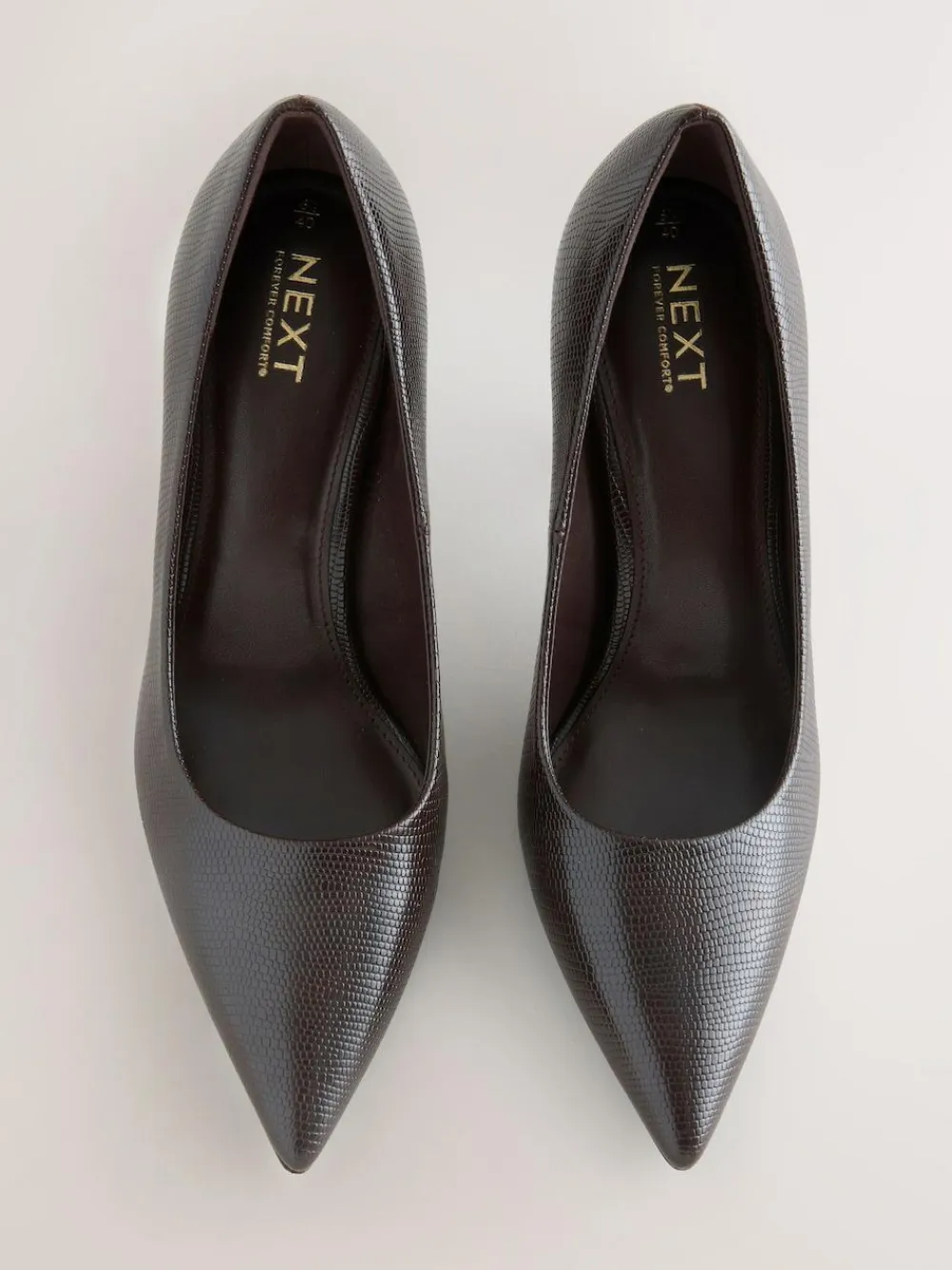 Step into timeless elegance with these chocolate brown Forever Comfort® Pointed Mid Court Shoes. The chic pointed toe make these shoes perfect for work or any occasion. Designed for all-day wear, the slip-on style is enhanced with Forever Comfort® padding for superior cushioning. Pointed toe Forever Comfort® padding Slip-on court style Stiletto heel Heel height 8.5cm. Upper – Other Materials, Lining & Sock – Other Materials, Sole – Other Materials.