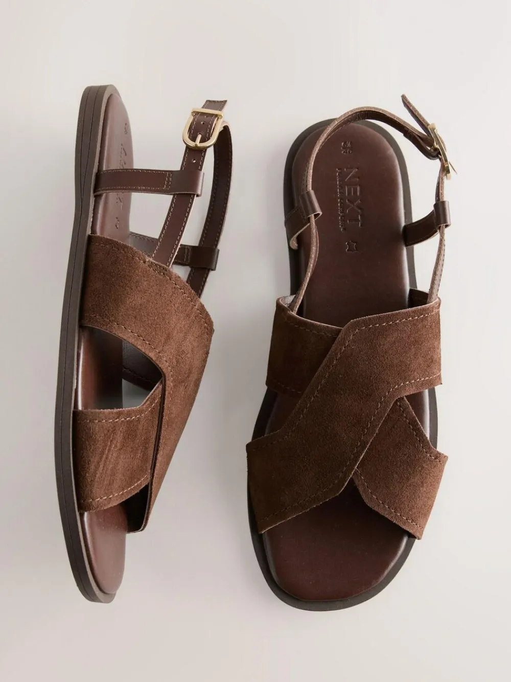 Upgrade your sandals ready for sun-drenched days and balmy evenings, with these stylish slingback sandals. With a strappy real leather upper with crossover and open toe detailing, an adjustable heel strap and a Forever Comfort® cushioned detailing, these comfortable sandals are perfect for popping in your suitcase. Standard or wide fit Leather upper Crossover straps Open toe Adjustable heel strap Forever Comfort® footbed Flat outsole Upper – Leather, Lining & Sock – Other Materials, Sole – Other Materials. Wide fit shoes and short ankle boots provide extra width across the foot. Wide fit long boots provide extra width across the foot and through the leg at the calf.