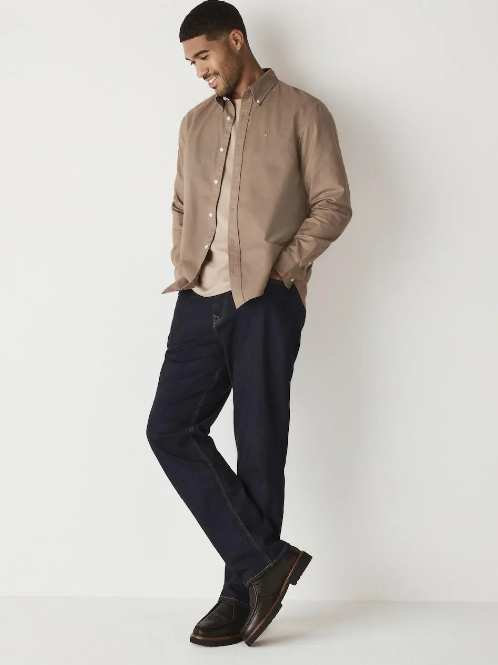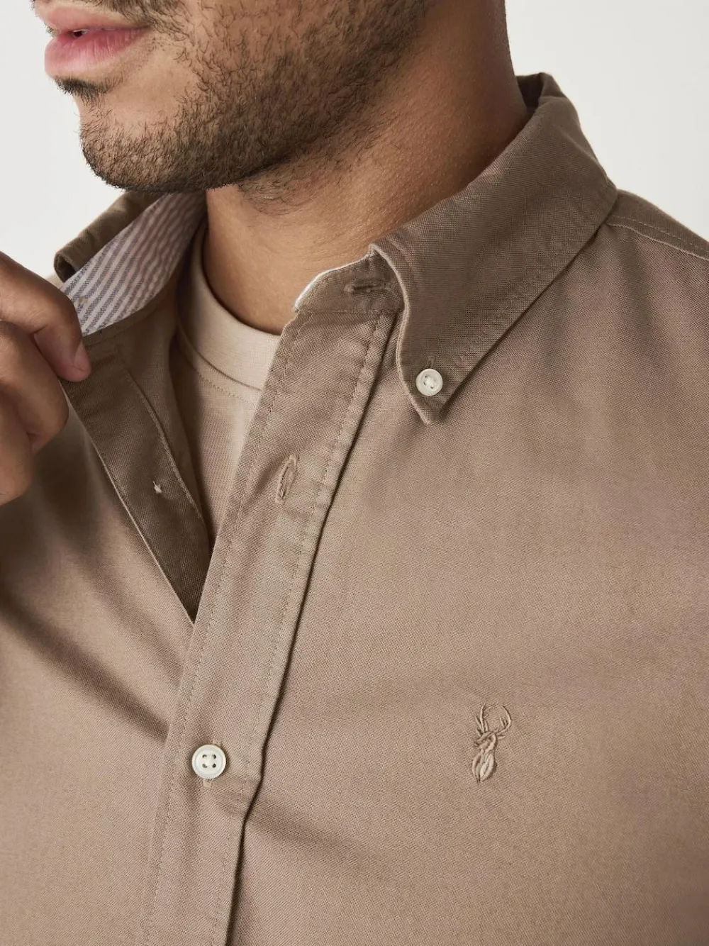 Next Stone Natural Regular Fit Long Sleeve Oxford Shirt