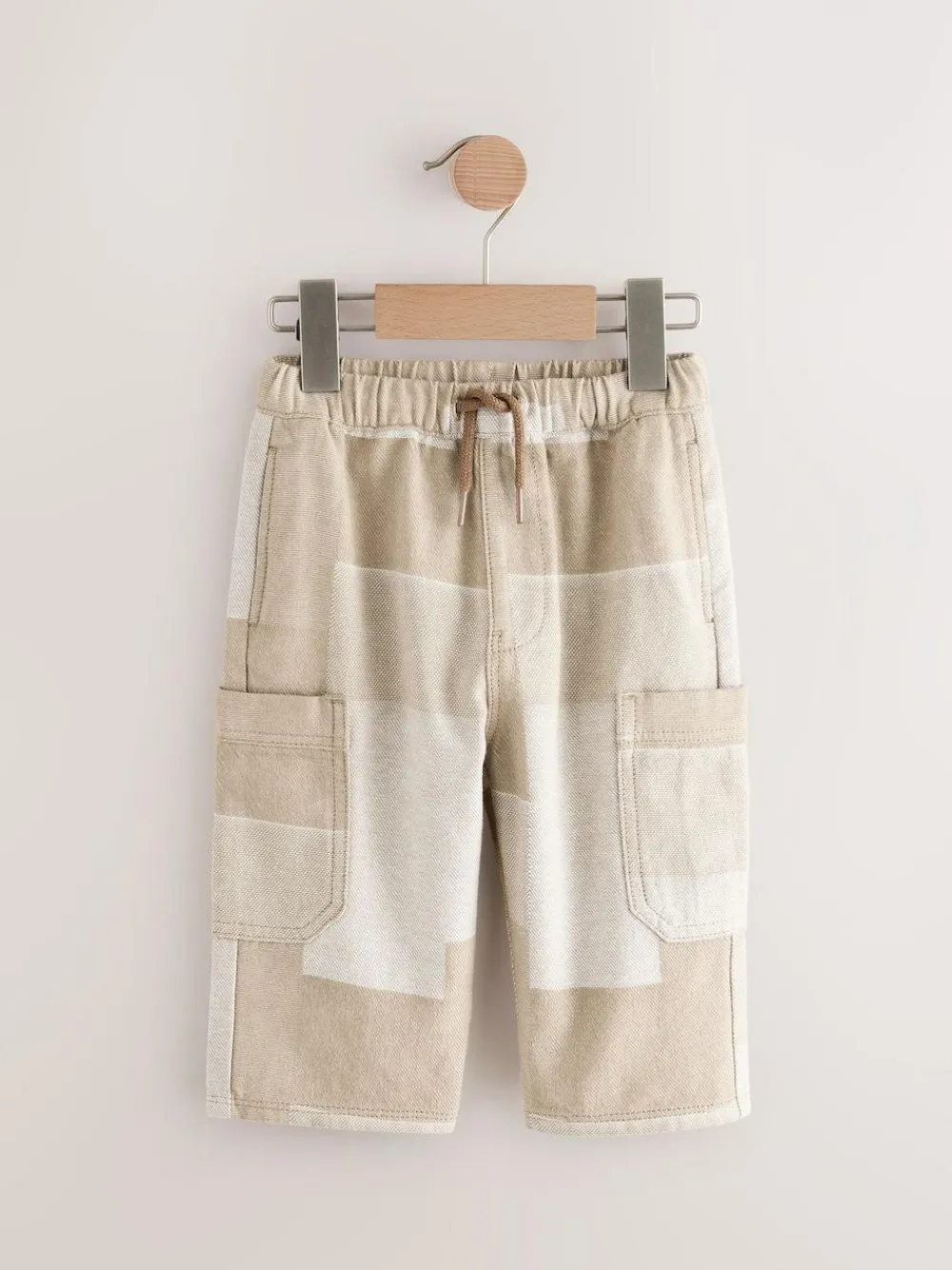 Next Stone Patchwork Wide Leg Pull On Cargo 100% Cotton Jeans (3mths-7yrs)^BOY Jeans & Joggers|Jeans
