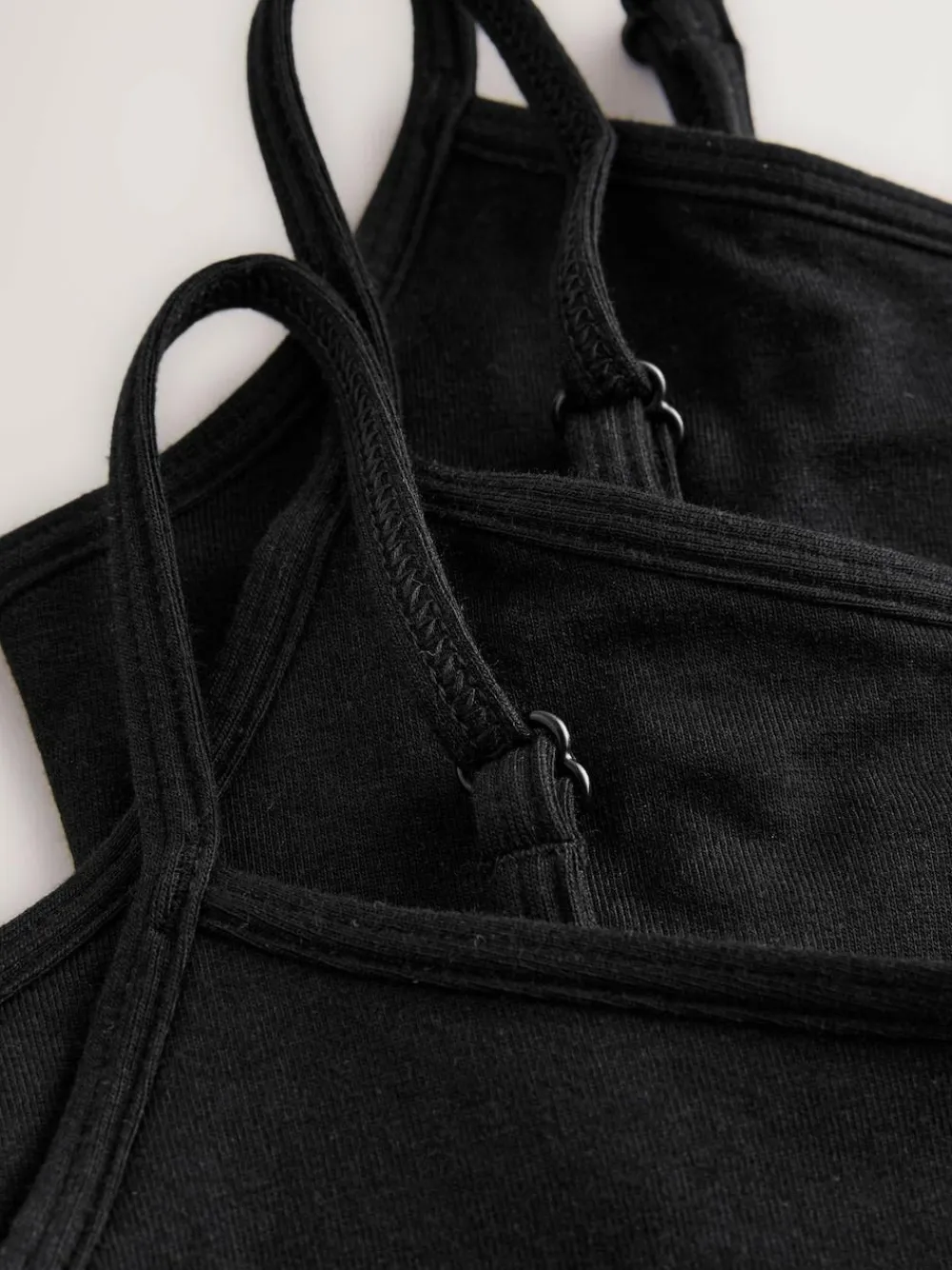 Our black cotton rich seamfree strappy crop tops are designed with a straight back shape and seamfree fabric. With an elasticated underband, a double layered front panel and adjustable shoulder straps for a secure and comfy fit, this multipack is perfect for stocking up on everyday essentials. 3 pack Cotton rich Adjustable straps Elasticated underband Seamfree fabric Machine washable. 3 x Crop Top 95% Cotton, 5% LYCRA® XTRA LIFE™ elastane. LYCRA® XTRA LIFE™ fibre keeps your underwear looking new for longer, with lasting comfort and fit. This innovative stretch fabric is lightweight and breathable and will hold its shape wear after wear, wash after wash.
