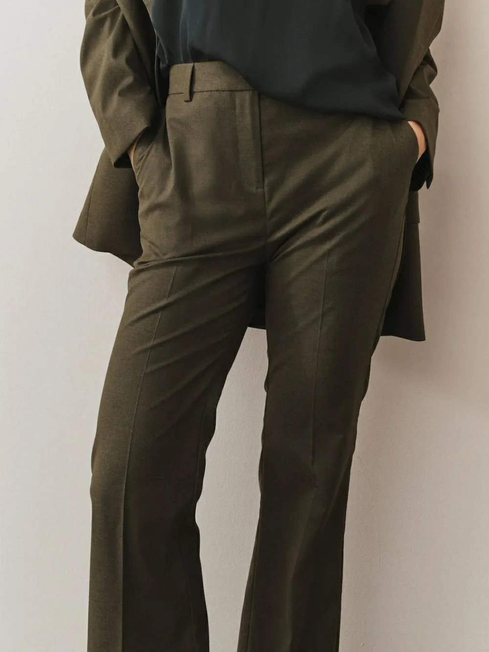 Designed for the everyday, our khaki green tailored bootcut trousers are a versatile addition to your work wardrobe. These mid-rise trousers feature a flattering bootcut silhouette and are crafted from a comfortable stretch fabric, ensuring both style and ease of movement throughout your workday. Mid rise Bootcut leg Stretch fabric Short to fit inside leg 27″ / 69cm. Regular to fit inside leg 29″ / 74cm. Long to fit inside leg 31″ / 79cm. XL Tall to fit inside leg 33″ / 84cm. XXL Tall to fit inside leg 35″ / 89cm. Machine washable. 66% Recycled polyester, 25% Viscose, 7% Wool, 2% Elastane. Items with the curve logo are available in sizes 18 and above., Our tall collection is designed to fit women 5’10” and above. This has been proportionally increased through the body, leg and sleeve to achieve the perfect fit. Available in sizes 8-20.