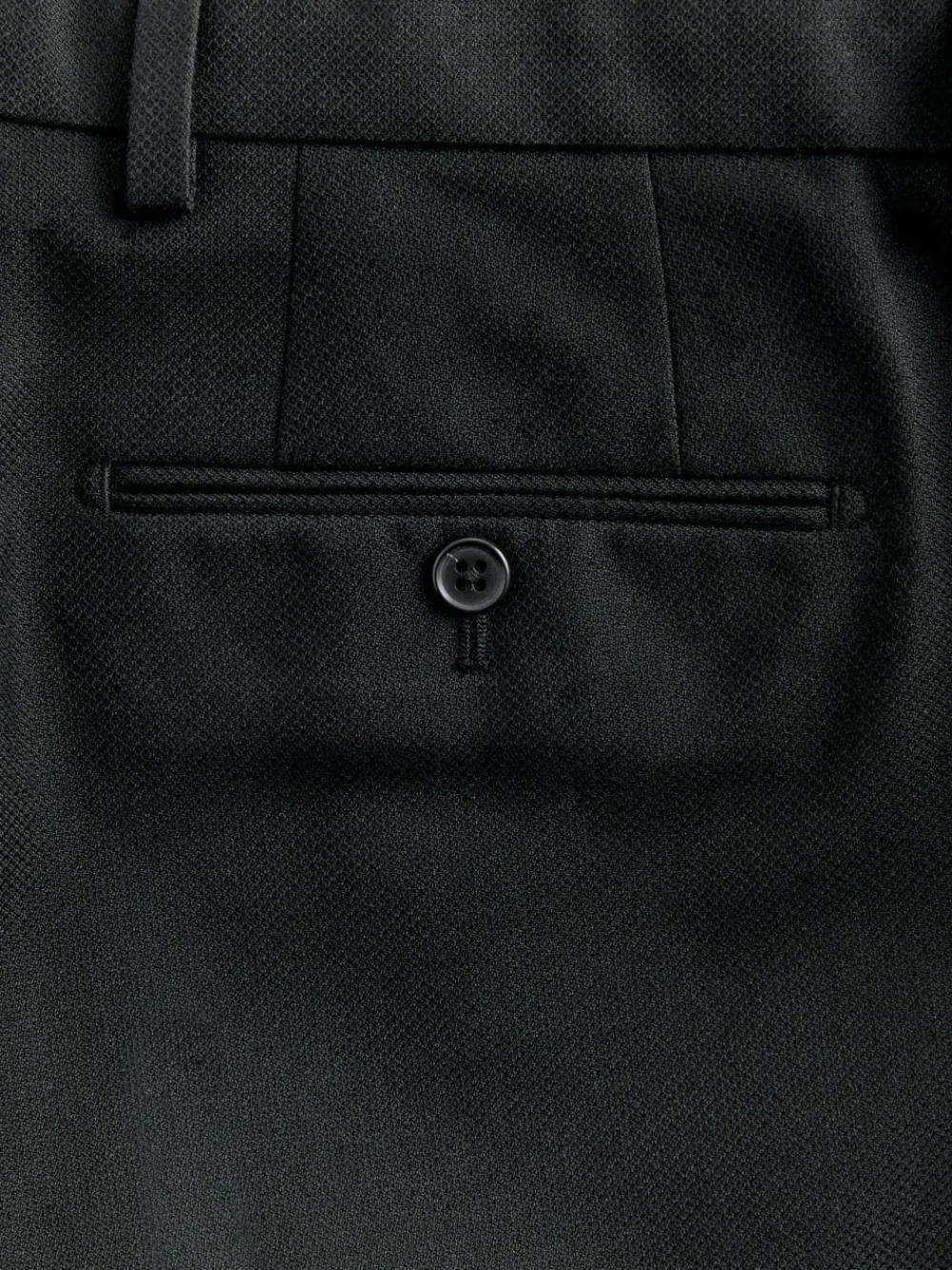 These stylish suit trousers have an elevated feel with a textured fabric finish, featuring side pockets, rear pockets and a button and fly fastening Textured fabric Side pockets Rear pockets Button and fly fastening 62% Recycled polyester, 35% Viscose, 3% Polyester.