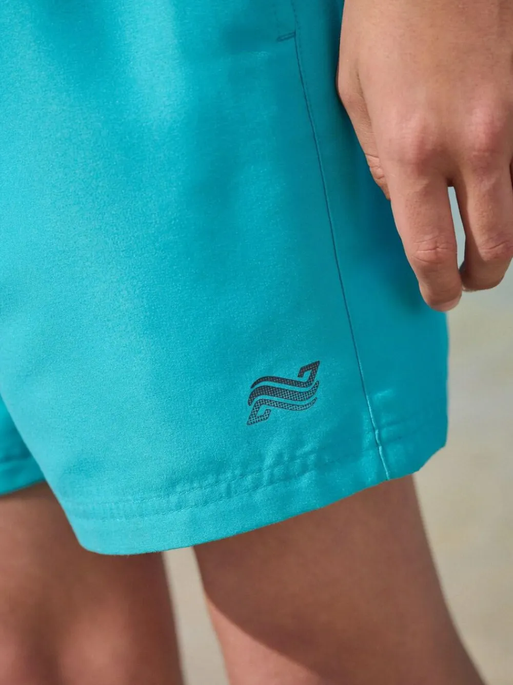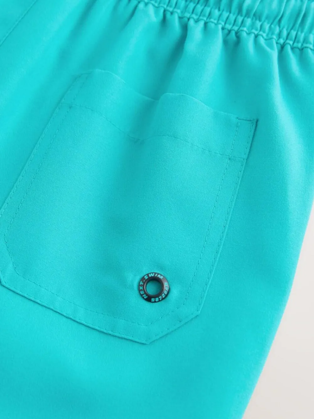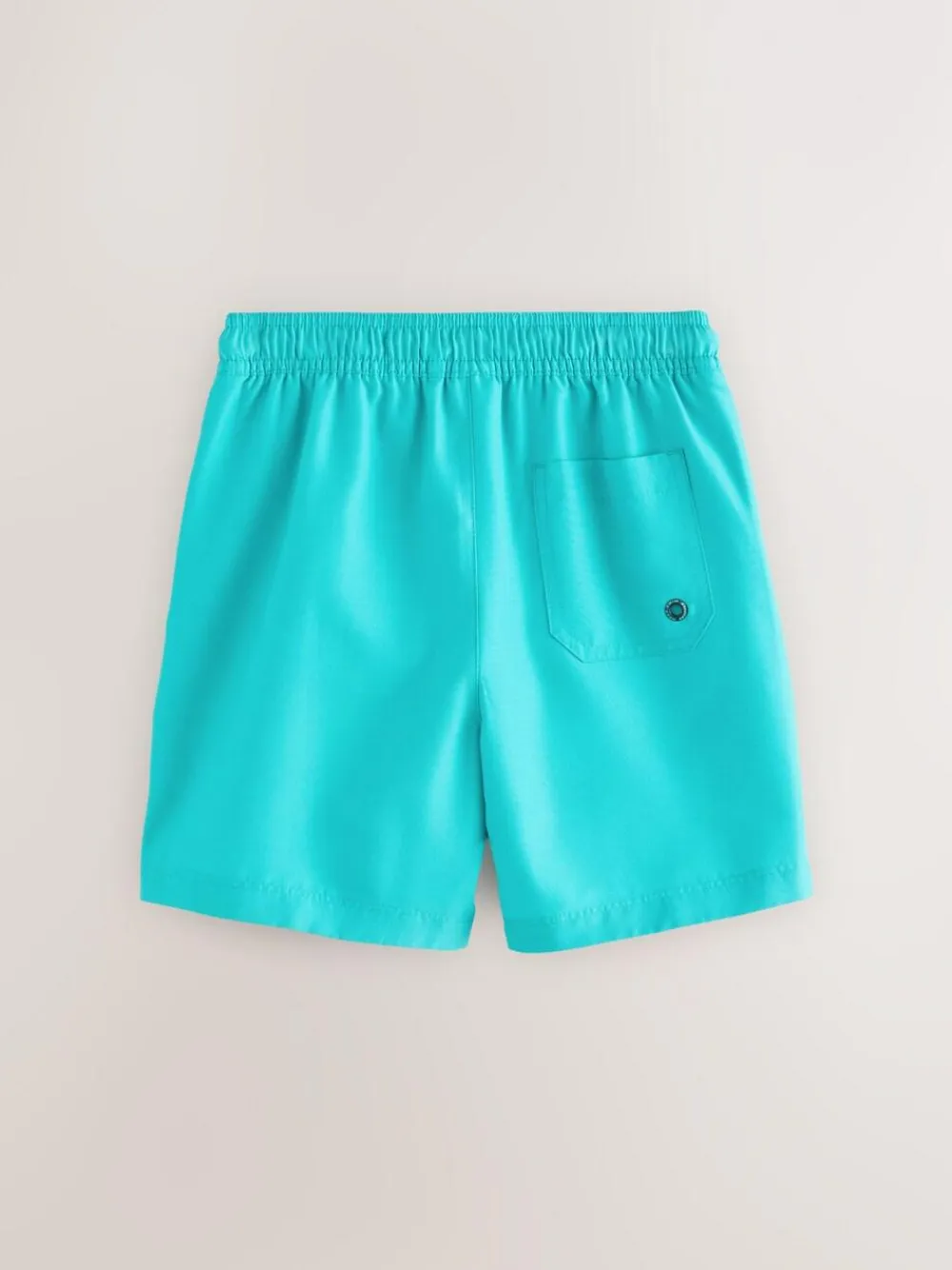 Perfect for sunny holidays or a dip in the pool, our boys regular length swim shorts are available in a choice of colours, made from a quick drying fabric with a comfortable lining and an adjustable elasticated waistband. Regular fit Elasticated waistband Adjustable drawstring Quick drying Comfort liner Machine washable. Main 100% Recycled polyester. Lining 100% Recycled polyester.
