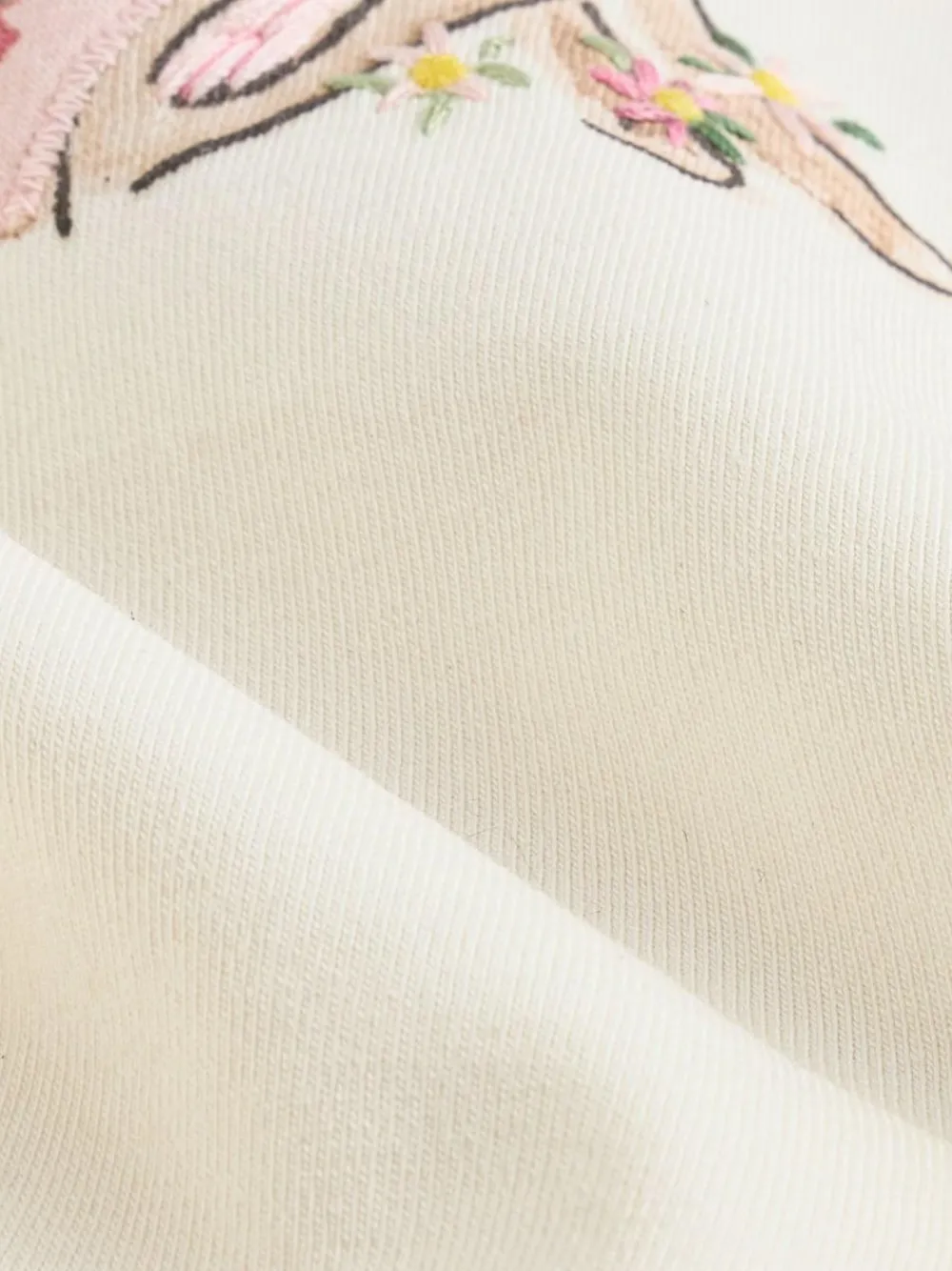 This cute 2-piece set is a perfect put-together look for spring and summer, featuring a long sleeve cotton-rich top with a frill neckline and elasticated sleeve cuffs, decorated with a bunny graphic to the chest with 3D bow detailing. Full-length leggings finish the outfit, with an all-over floral print and an elasticated waistband for pull-on wear. 2-piece set Cotton-rich top Long sleeves Frill neckline Bunny print Full-length leggings Elasticated waistband Machine washable. T-shirt Main 95% Cotton, 5% Elastane. Collar 100% Cotton. Leggings 95% Cotton, 5% Elastane. Warning: Keep away from fire and flames.