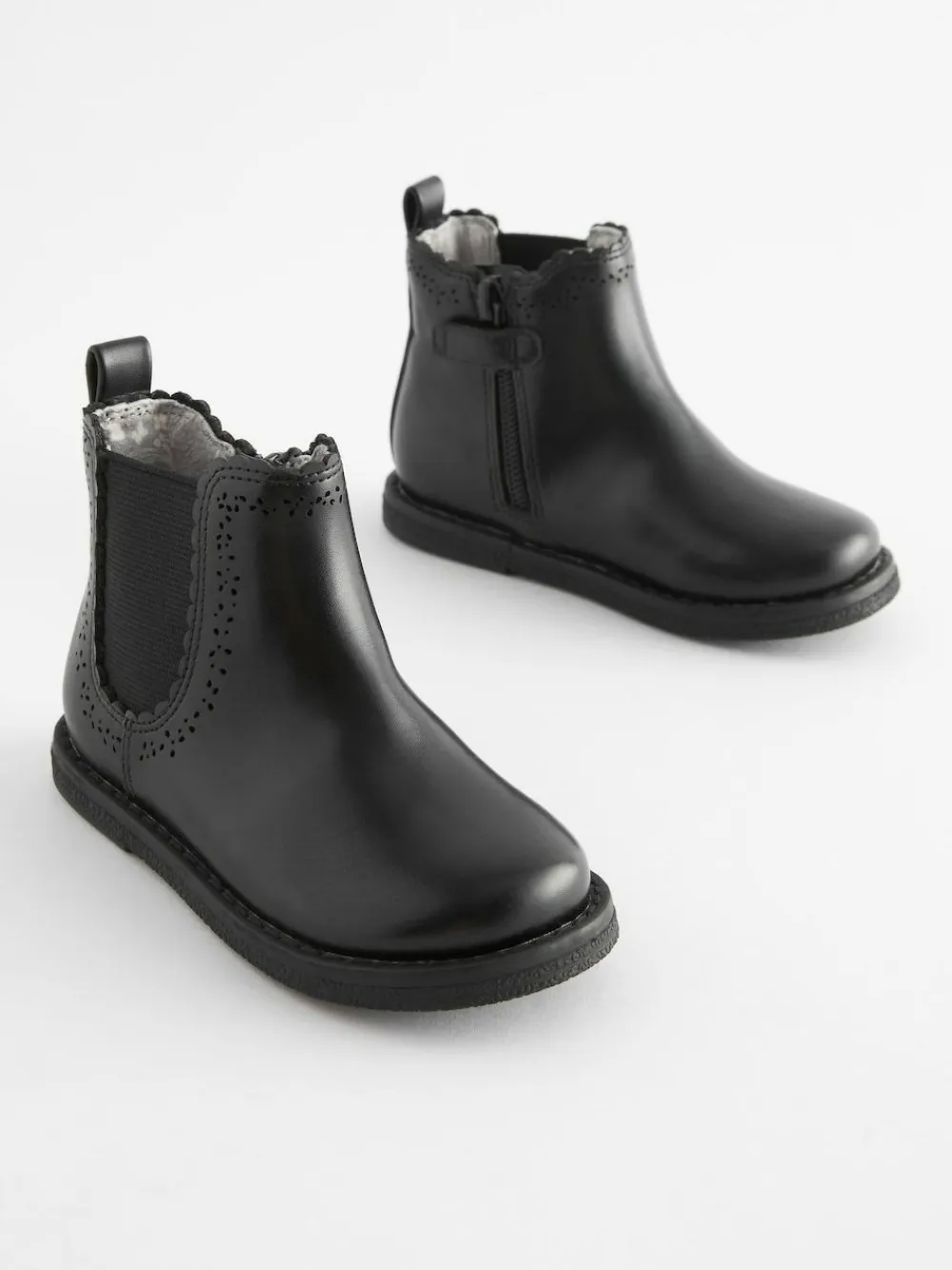 She’ll love these stylish Black Chelsea boots, with an easy-to-wear slip on design with a side zip fastening and elasticated side panels, a round toe and a comfortable textile lining. The shoes have a slip-resistant and durable sole that’s sure to carry them through play time and beyond. Faux leather upper Elasticated side panels Zip fastening Textile lining Slip-resistant sole Smart and durable for school View the How to Measure and Fit at Home Guide Upper – Other Materials, Textile, Lining & Sock – Textile, Sole – Other Materials.