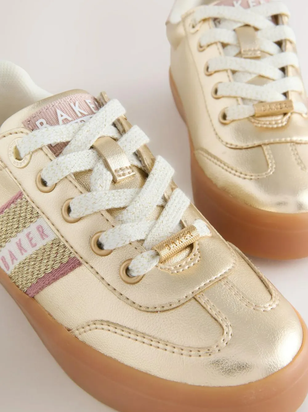-Gold metallic trainer-With Gum Sole-with a branded gold metalised fibre thread tape detail.-heel tab-Cushioned sole.-Lace up detail with gold metalised fibre -Baker branded trims Upper – Other Materials, Leather, Lining and Sock – Textile, Sole – Other Materials.