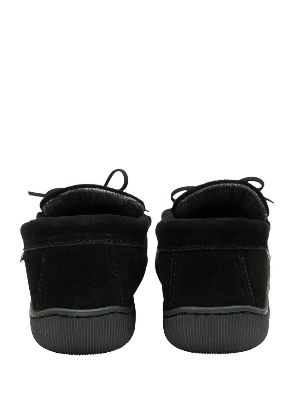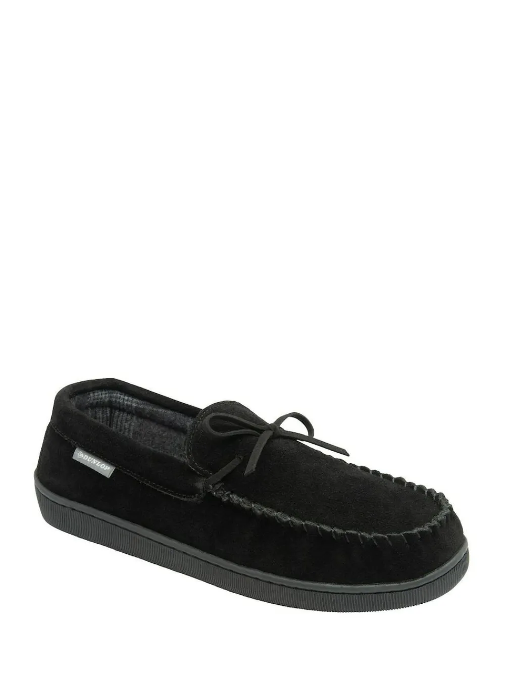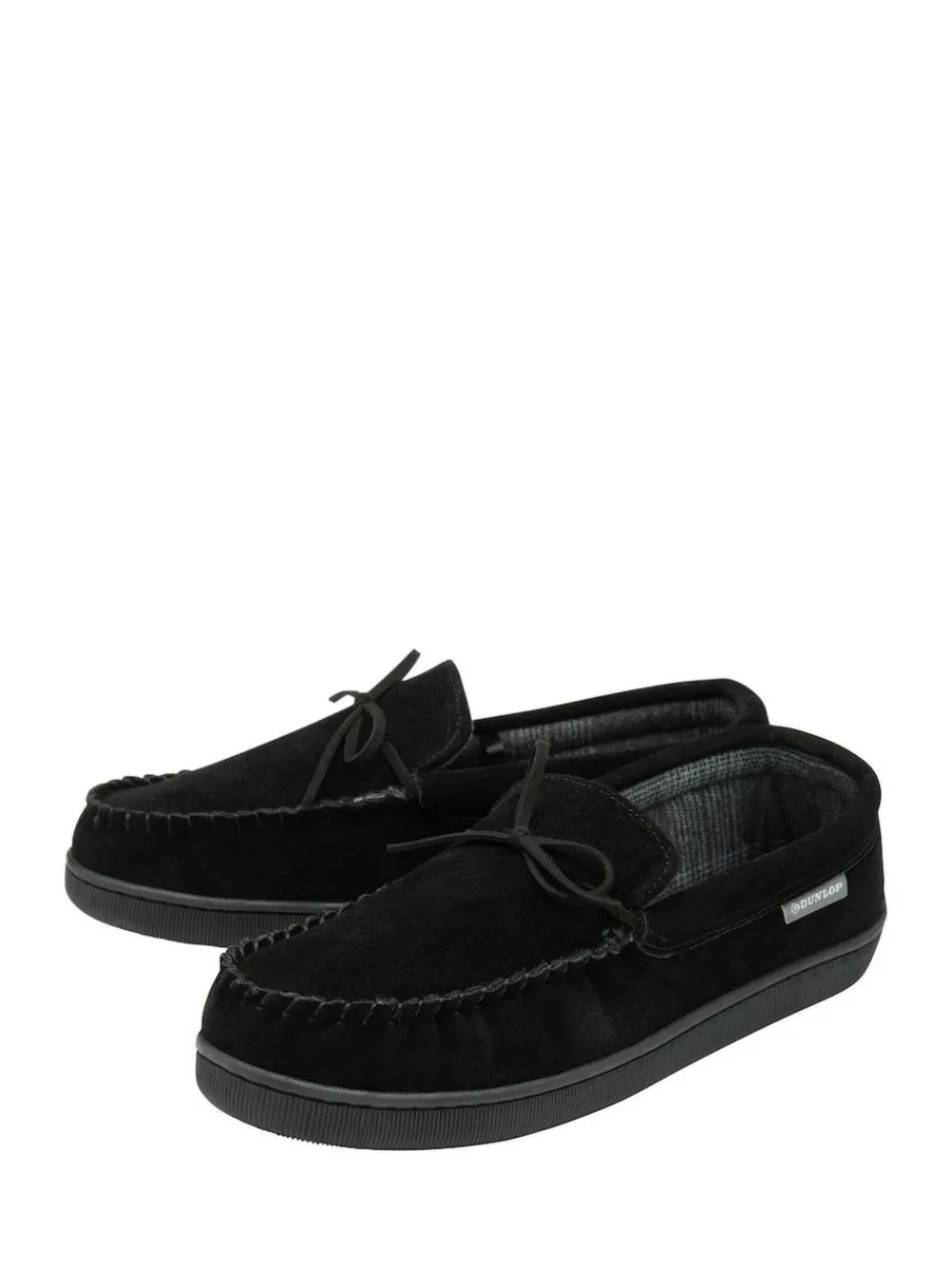 Online Dunlop Suede Lace-Up Moccasin Full Slippers Black