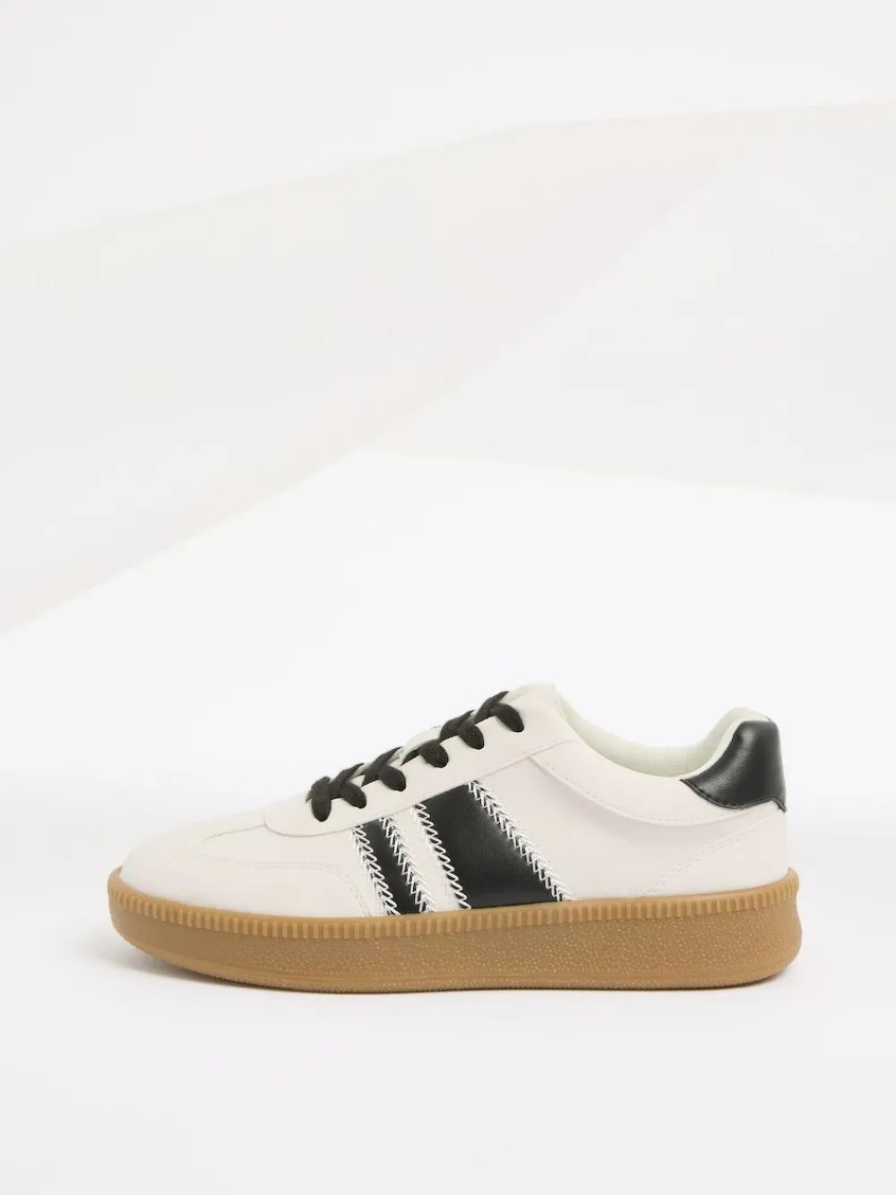 Stay super on trend with the gumsole retro trainer! A classic design that will never go out of style. Pair with your favourite pair of jeans or with a dress for an easy daytime look!Featuring: – Contrast paneling – Laces for adjustable fastening – Retro design – Natural colour gum outsole – Stripe Design – Casual wear Upper – Other Materials, Lining & Sock – Textile, Other Materials, Sole – Other Materials.