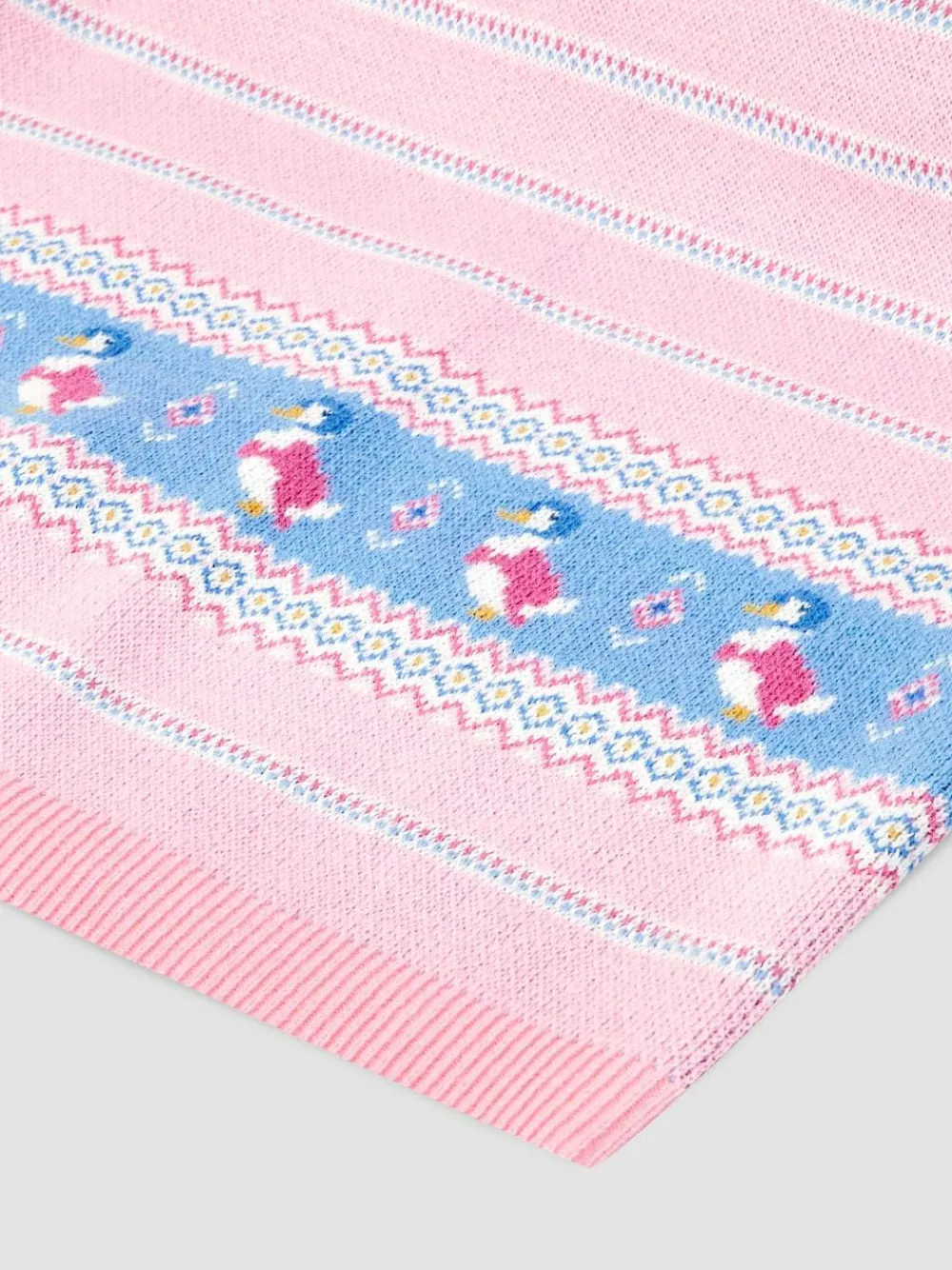 Introduce newborn babies into Beatrix Potter’s enchanting anthropomorphic world with our Jemima Puddle-Duck Knitted Shawl. Sumptuously soft and crafted from pure cotton, place the shawl over little ones at home, or over the child in a pram, to keep kids warm and dry, and protected from all the elements. Gentle on delicate skin, it’s ideal for soothing babies. And who can resist the joyful design? With all-over pink and white stripes and a charming Jemima Puddle-Duck motif, kids and parents alike will be “quackers” with this special accessory. Perfect at home or on the move to keep babies cosy Jemima Puddle-Duck design Ideal gift for a newborn baby 100% Cotton 90 x 70cm Machine washable Personalise me with your chosen name, search ref B25463 100% Cotton.