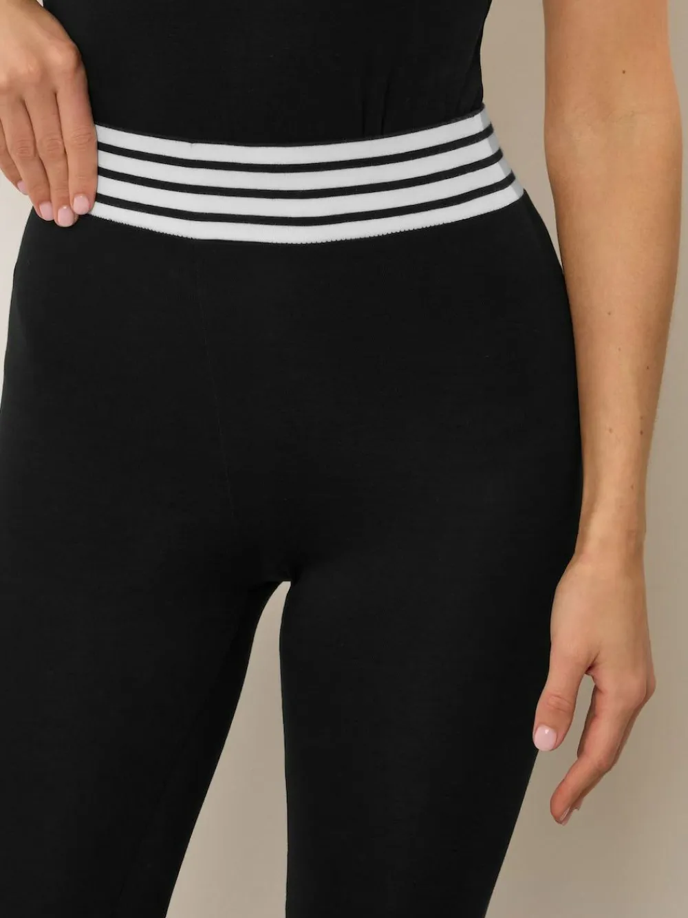 Fit Fashion Notes: Upgrade your basics with these striped waistband leggings. Made from a soft jersey fabric, they feature a striped detailing and complete in a skinny fit. Wear with a sweatshirt and trainers for an easy everyday outfit. Features: Stripe waistband Skinny fit High waisted Made from a soft jersey fabric 95 cotton, 5 elastane Inside seam measures: 35 Machine washable Model is 5’11 / 180 cm and size UK 10 / EU 38. Machine washable. 95% Cotton, 5% Elastane.