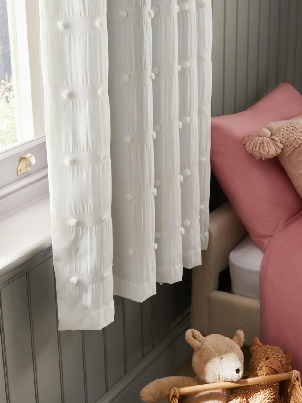 Online Next Bobble Pom Eyelet Blackout Curtains White