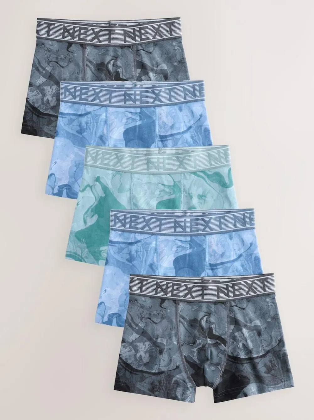 Online Next Boxers 5 Pack (2-16yrs) Blue Marble Print
