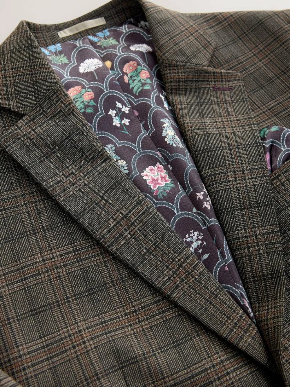 Online Next Brown Slim Fit Trimmed Check Suit Jacket