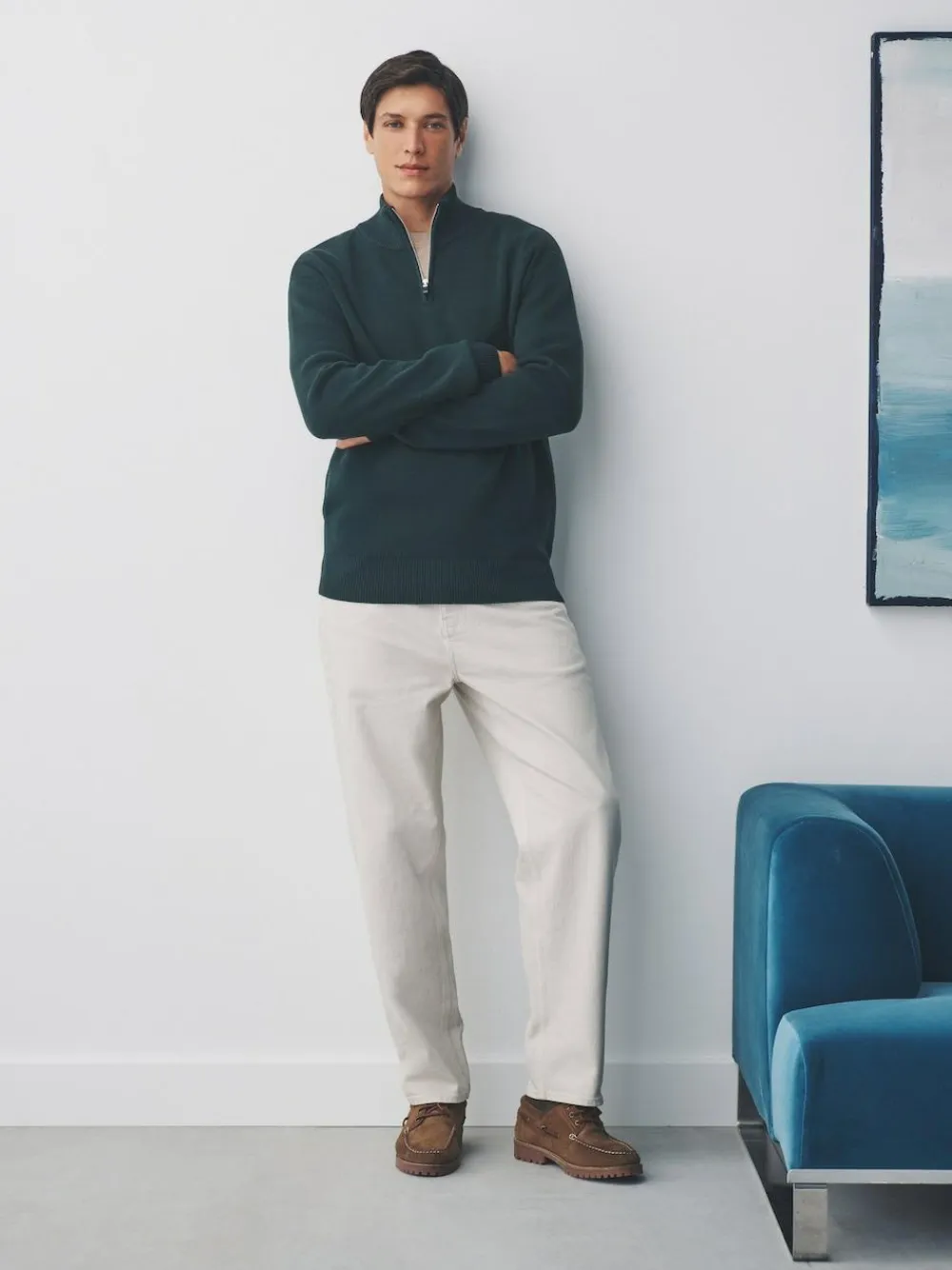 Elevate your wardrobe with this premium quarter zip jumper in dark green. Crafted from 100% cotton in a classic Milano stitch, it offers a sophisticated look and feel. The regular fit and zip neck fastening make it a versatile piece, perfect for layering for day or night. Dark green Premium Quarter-Zip Jumper 100% cotton Milano stitch Zip-neck fastening Perfect for layering Machine washable. 100% Cotton.