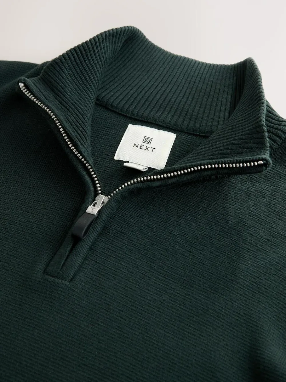 Online Next Dark Green Plain N.Premium Regular Fit 100% Cotton Premium Quarter Zip Jumper