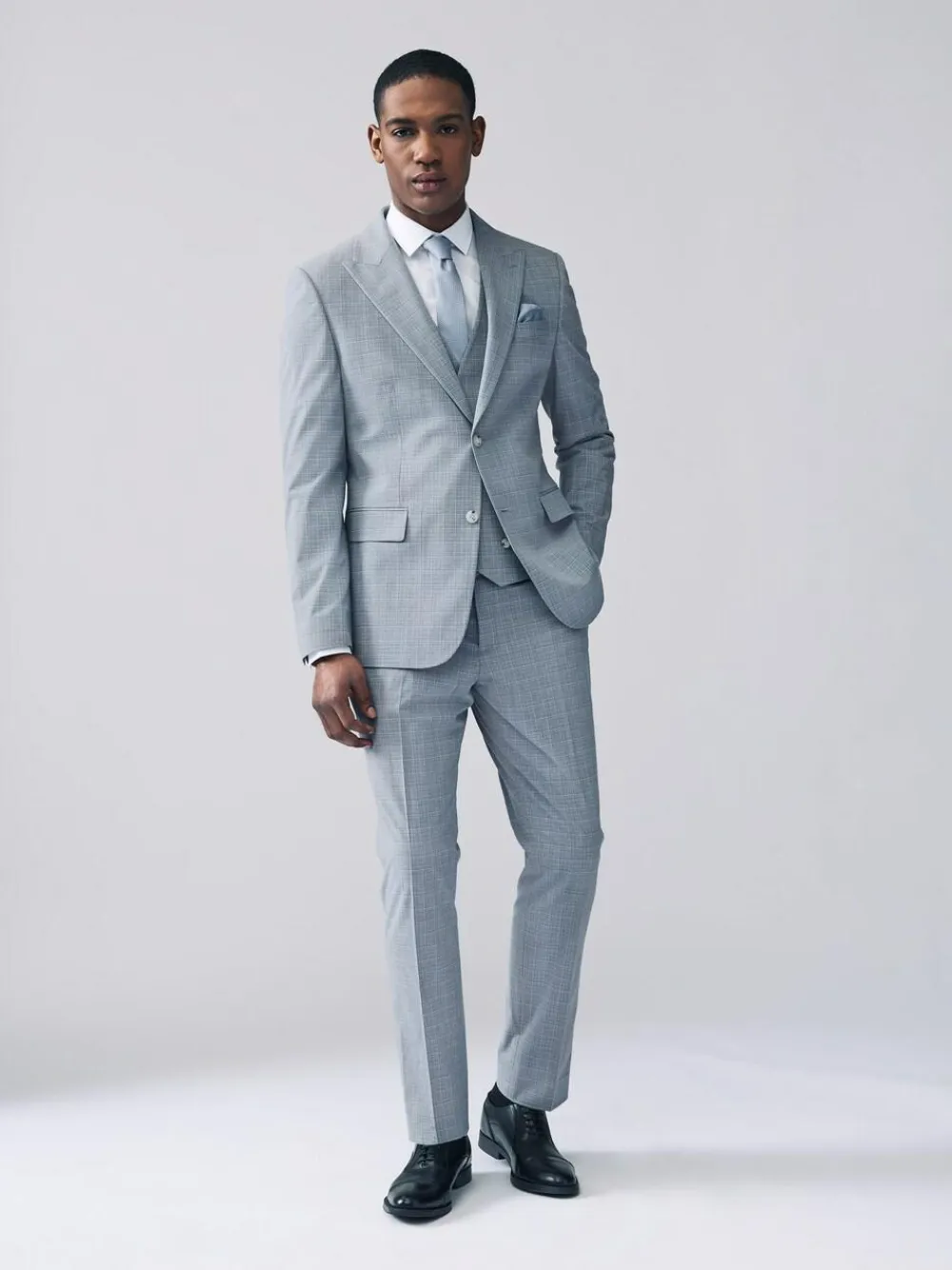 Online Next Light Blue Slim Fit Check Suit Jacket