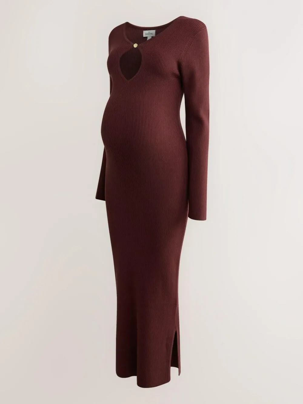 Online Next Maternity Knitted Keyhole Dress Burgundy Red