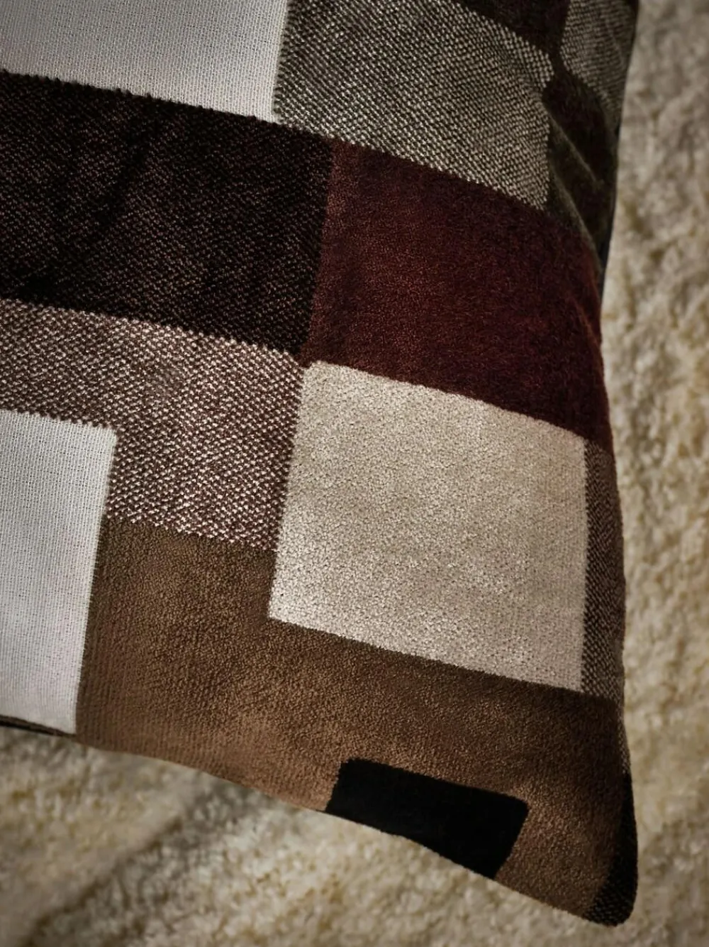 The Orson cushion features a unique geometric design on a cut velvet base. The abstract pattern gives a cosy yet sophisticated feel with the warm neutral tones. Making it a stylish and inviting addition to any space. Height 59cm Width 59cm Front 72% Livaeco™ Viscose, 28% Polyester. Back 100% Polyester. Filling 100% Recycled polyester. Polyester Pad Included.