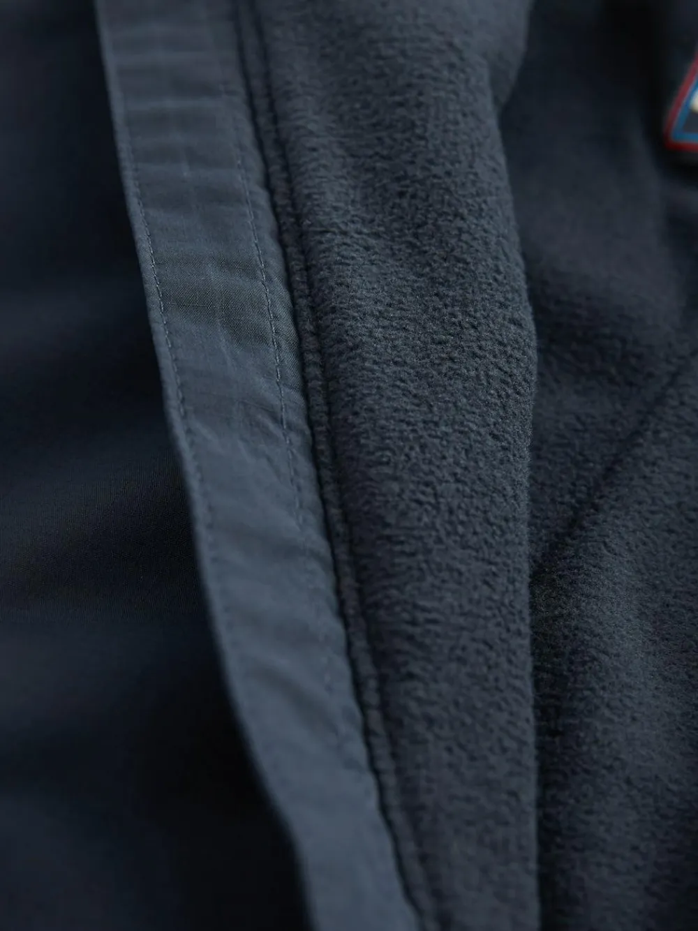 Make rainy day adventures even more fun with our navy blue waterproof fleece lined puddlesuit. This long sleeve one-piece is fully waterproof and also lined with micro fleece to keep him warm. Complete with taped seams, zip fastening and a hood, he’ll be dry even on the rainiest days. Fleece lined Zip fastening Long sleeves Elasticated cuffs Hooded Main 100% Recycled polyester. Lining 100% Recycled polyester.