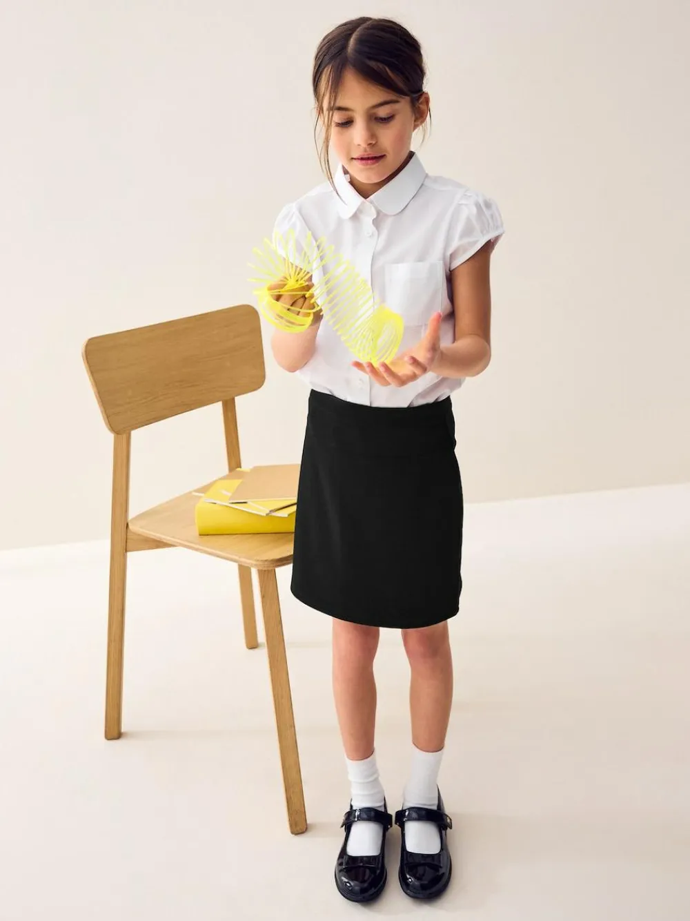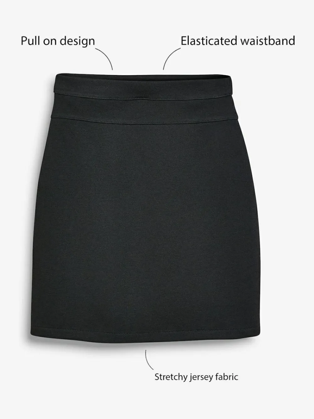 Take the stress out of school mornings with our Dressing Made Easy School Uniform Collection. Featuring pull on trousers, skirts and dresses alongside hidden touch fastenings, printed labels and elasticated waists. Getting ready for school has never been easier. This black pencil skirt is crafted from a soft jersey fabric with added stretch, in a pull-on style with an elasticated waistband it provides comfort and easy dressing. Key Features: Pull-on style Elasticated waistband Pencil skirt Stretchy jersey fabric Machine washable. 75% Recycled polyester, 22% Viscose, 3% Elastane.