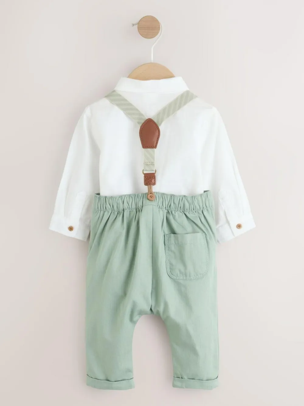 Online Next Sage Green Baby Shirt Trousers and Braces Set 3 Piece (0mths-2yrs)