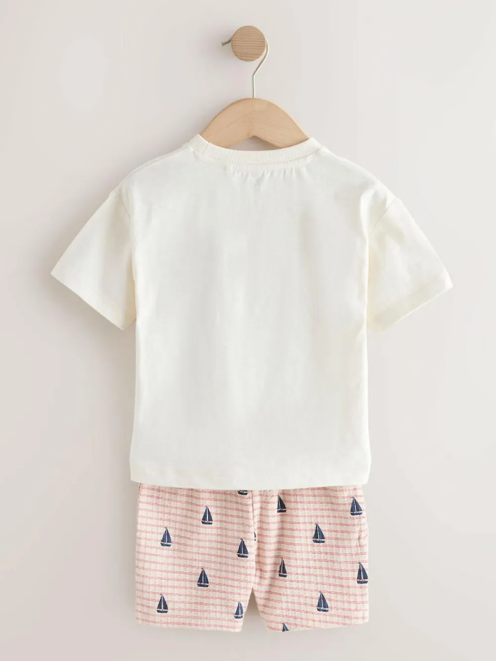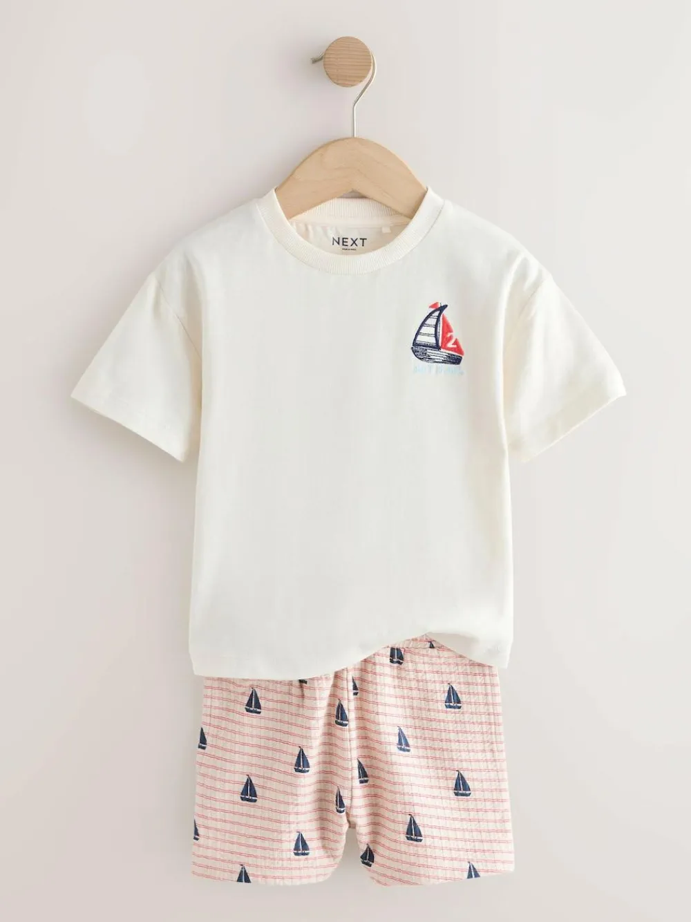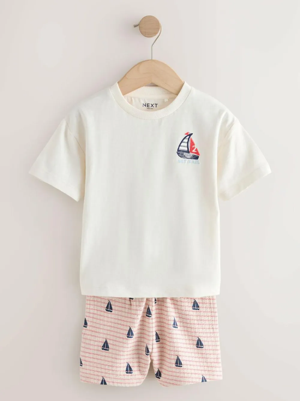 Online Next Short Sleeve T-Shirt and Shorts Set (3mths-7yrs) White Boat Embroidery