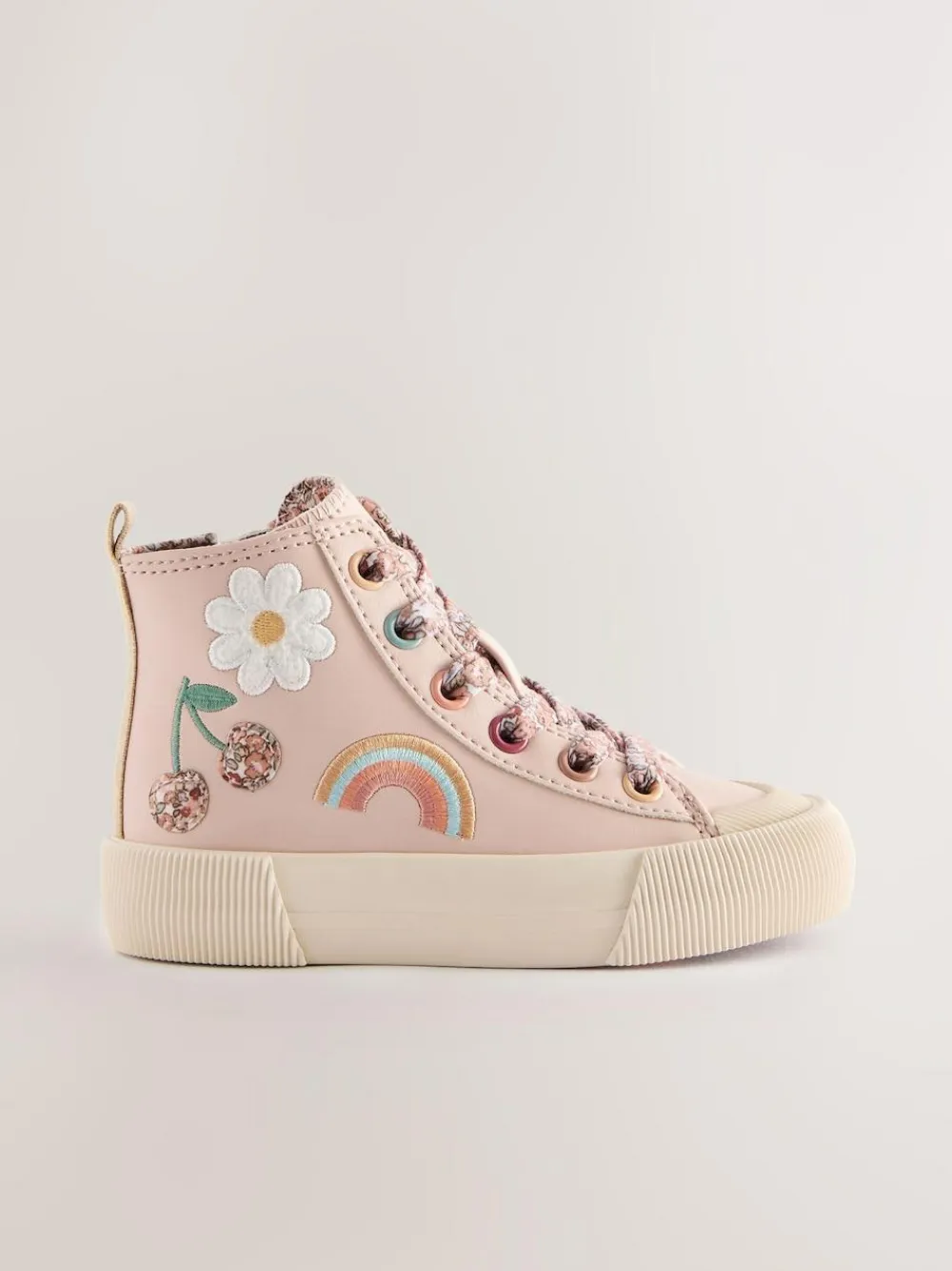 These high top neutral trainers have an applique character design with a textile upper and a lace-up fastening, featuring a zip fastening on the inside for easy wear, a textile lining and a slip-resistant durable outsole. High top Textile upper Lace-up fastening Zip fastening Textile lining Slip-resistant outsole Upper – Other Materials, Textile, Lining & Sock – Textile, Sole – Other Materials.