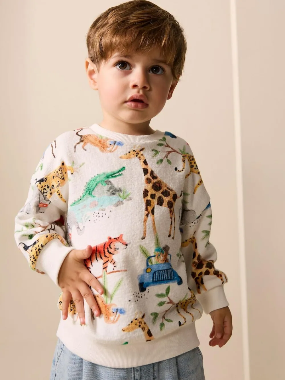Online Next Watercolour Animals All-Over Print Crew Neck Sweatshirt (3mths-7yrs)