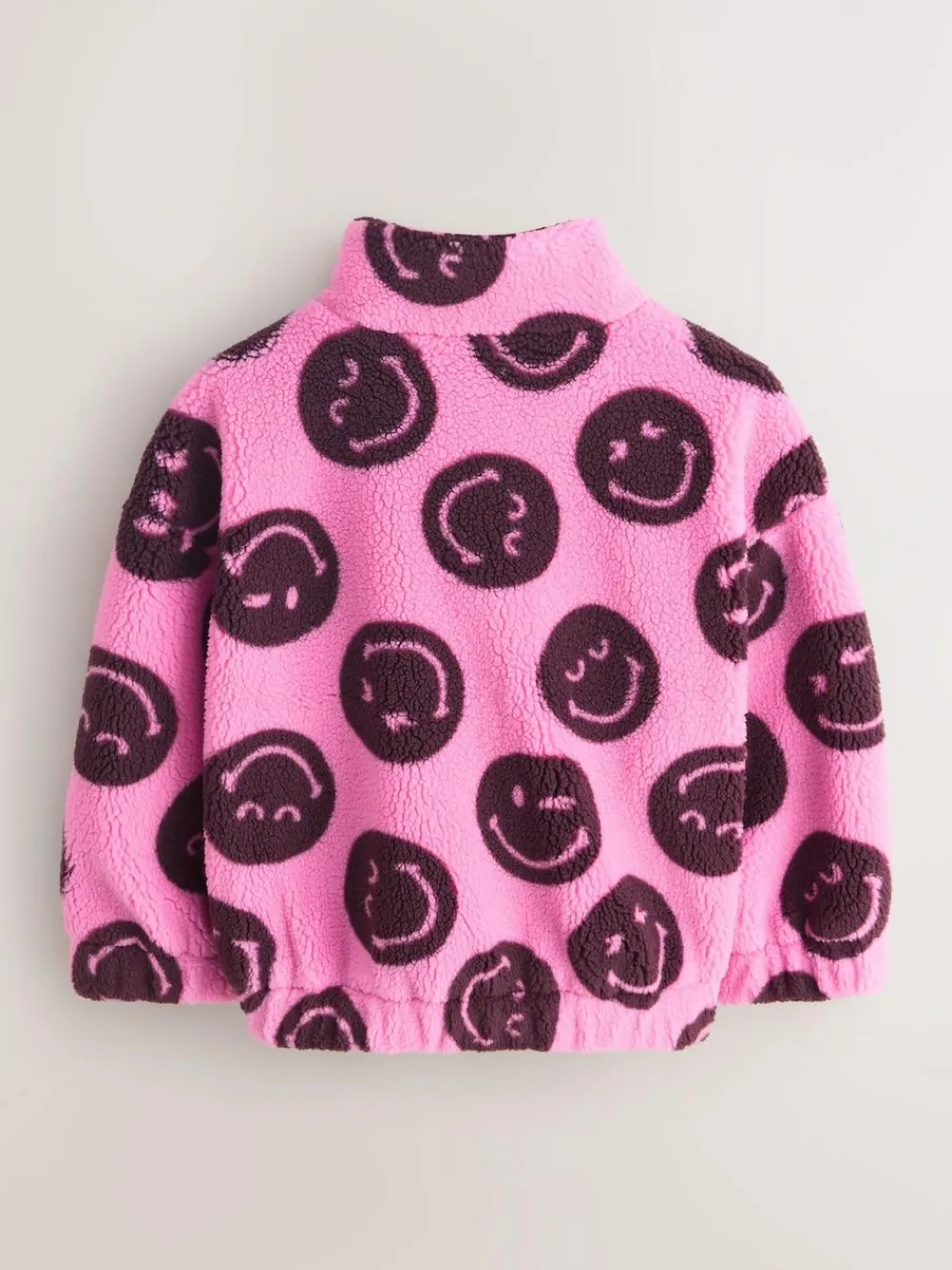 Online Next Zip Up Borg Jacket (3-16yrs) Pink/Berry Smiley