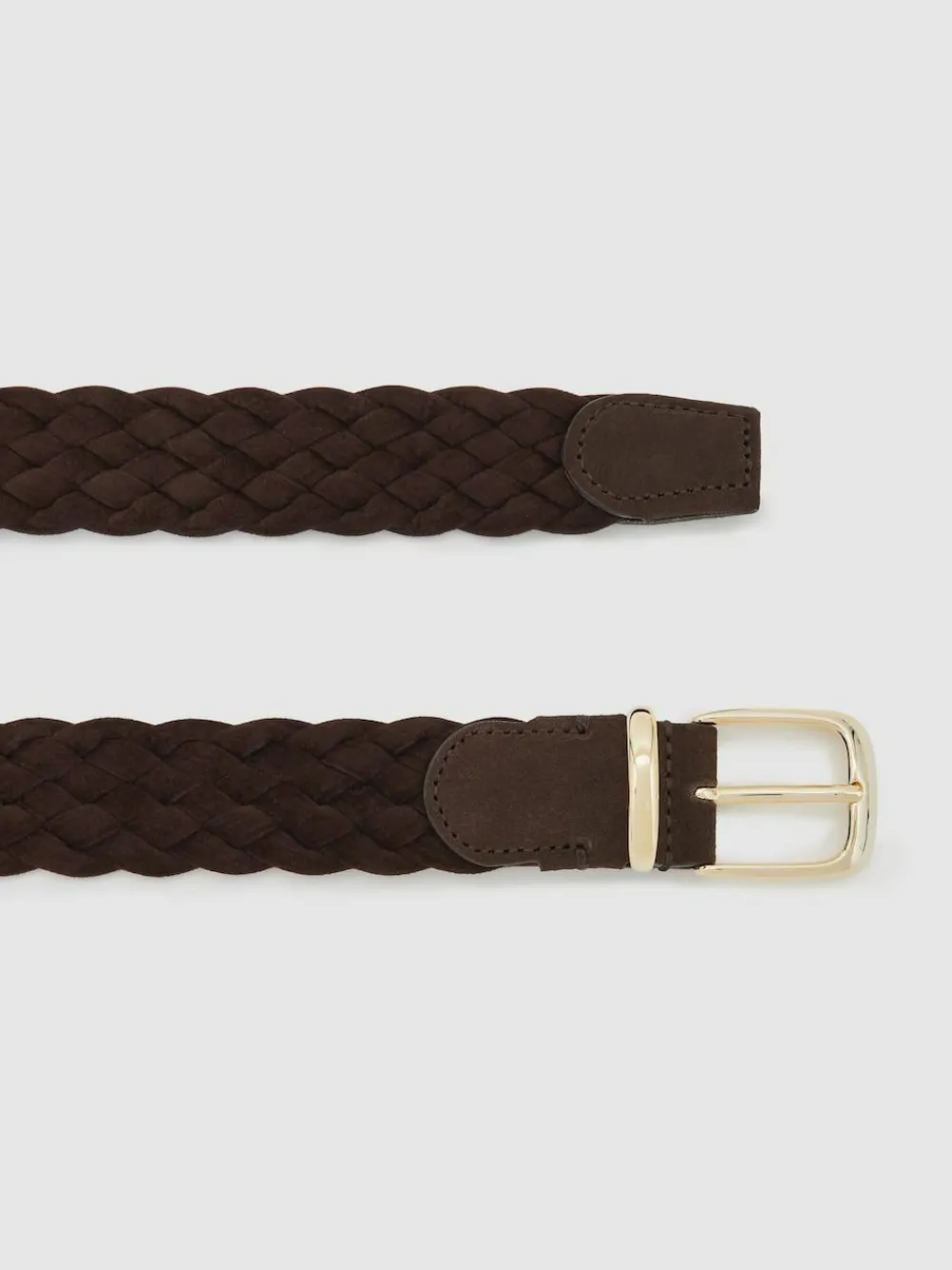 Online Reiss Jesse Suede Woven Belt Dark Brown