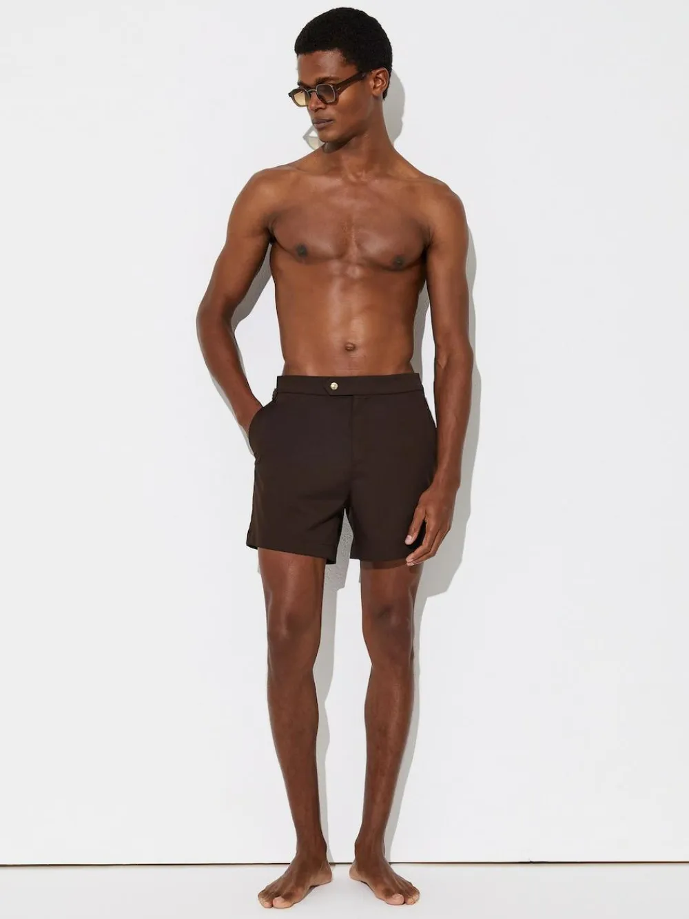 The Chocolate Brown Sun swim shorts are a summer essential, crafted from quick-drying fabric. Side adjusters ensure a comfortable, personalised fit, while side slip pockets enhance practicality. Quick drying Side adjusters Side slip pockets Mesh lining Press-stud with zip The model is wearing a size M. Measurements of model: 6ft 2.5” / 189cm. Machine washable. Main 90% Recycled polyester, 10% Elastane. Lining 100% Polyester.