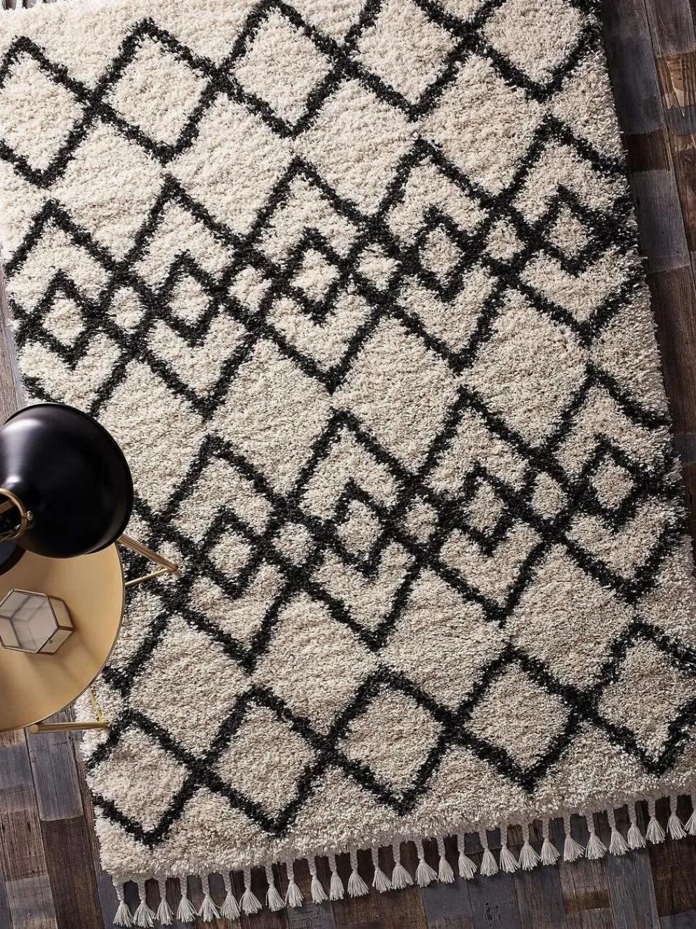 This deep pile shaggy rug features a Moroccan style design, woven using 100% heat set polypropylene; this rug is stylish, hard wearing and long lasting. Pair with some Moroccan style accessories for the perfect addition to your interior. 120×170 cm Height 6cm / Width 170cm / Depth 120cm 160×230 cm Height 6cm / Width 230cm / Depth 160cm For top tips on finding the right rug for you, read our handy guide here Sponge clean only. 100% Polypropylene.