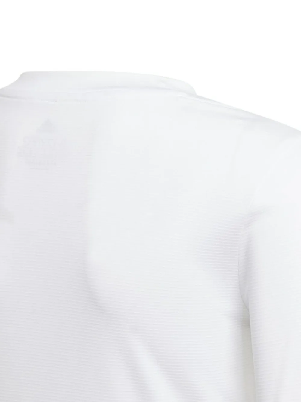 When a track top feels like overkill, you need an underlayer. This junior’s long-sleeved Team Base T-Shirt from adidas is cut slim so it fits under your football jersey for extra coverage from the cold. Sweat-wicking AEROREADY ensures you stay dry. Stretchy fabric means it won’t strangle your skills. 100% Polyester.