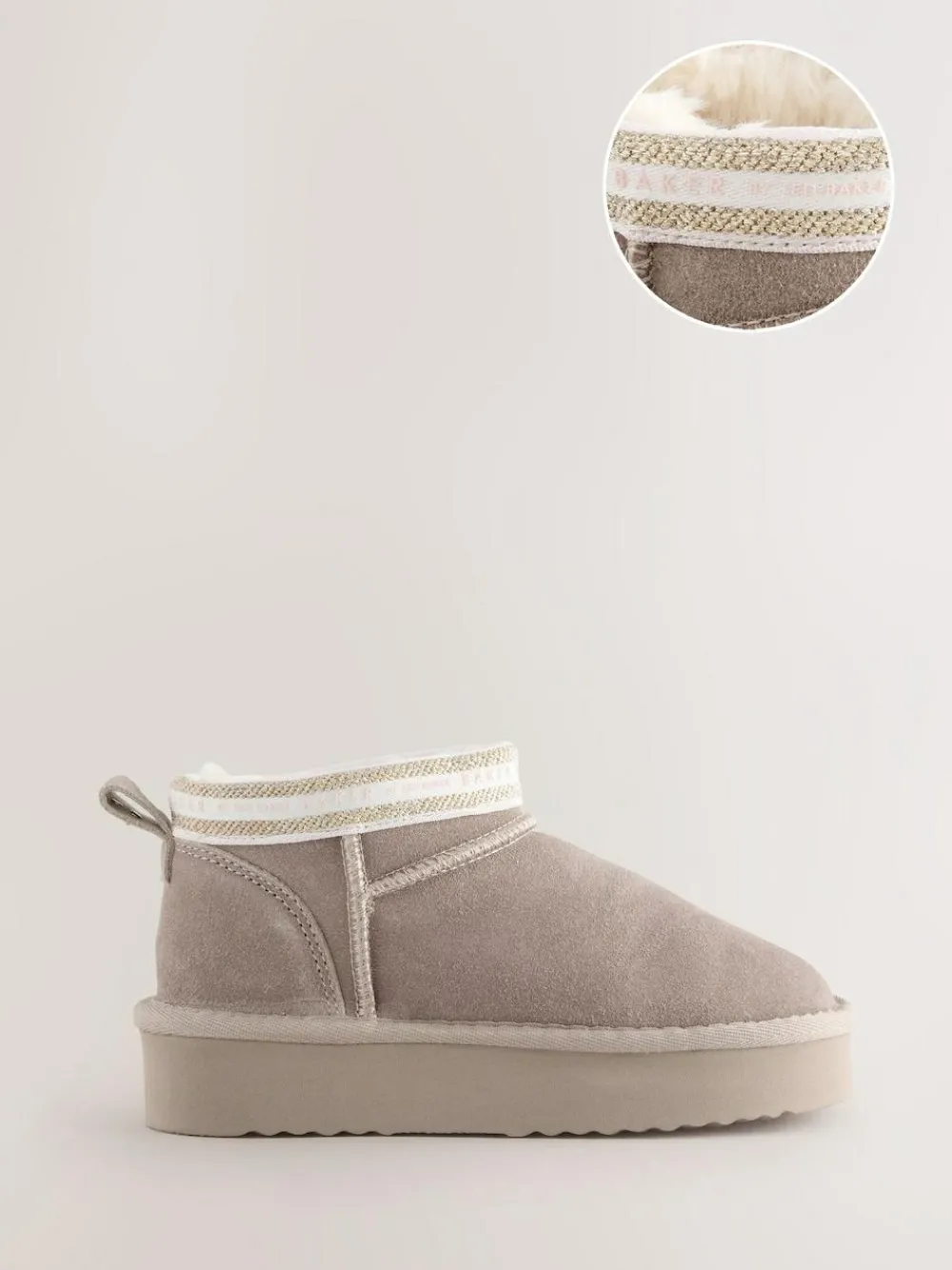 These cosy mink brown short slipper boots from Baker by Ted Baker give her the comfort of home wherever she goes, featuring a soft suede upper, branded tape detailing and a faux fur lining, finished with a durable outsole. Suede upper Trimmed ankle Faux fur lining Upper – Leather, Lining and Sock – Textile, Sole – Other Materials.