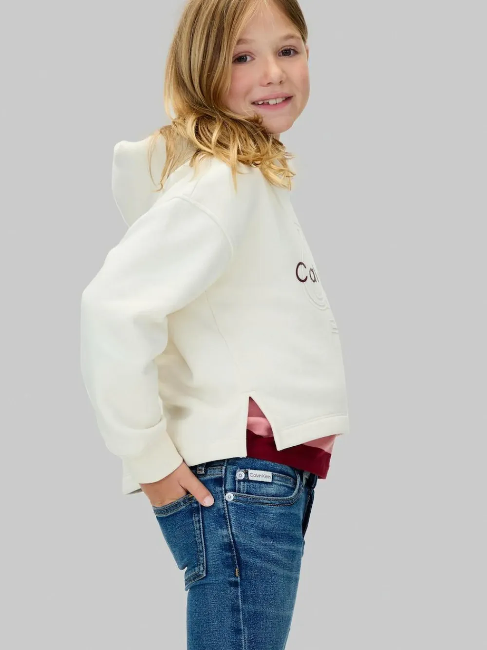 From everyday favourites to style-enthusiast looks, Calvin Klein Jeans Kids combines quality materials and trend-perfect colours with iconic logos on directional designs. Highlights: Include cotton stretch denim Adjustable waistband Zip fly Five-pocket styling Whiskering at the hips Fading at the knees and thighs Dark blue wash Calvin Klein branded hardware and logo badge Shape and fit flared fit Mid rise waist Machine washable. 90% Cotton, 8% Polyester, 2% Elastane.