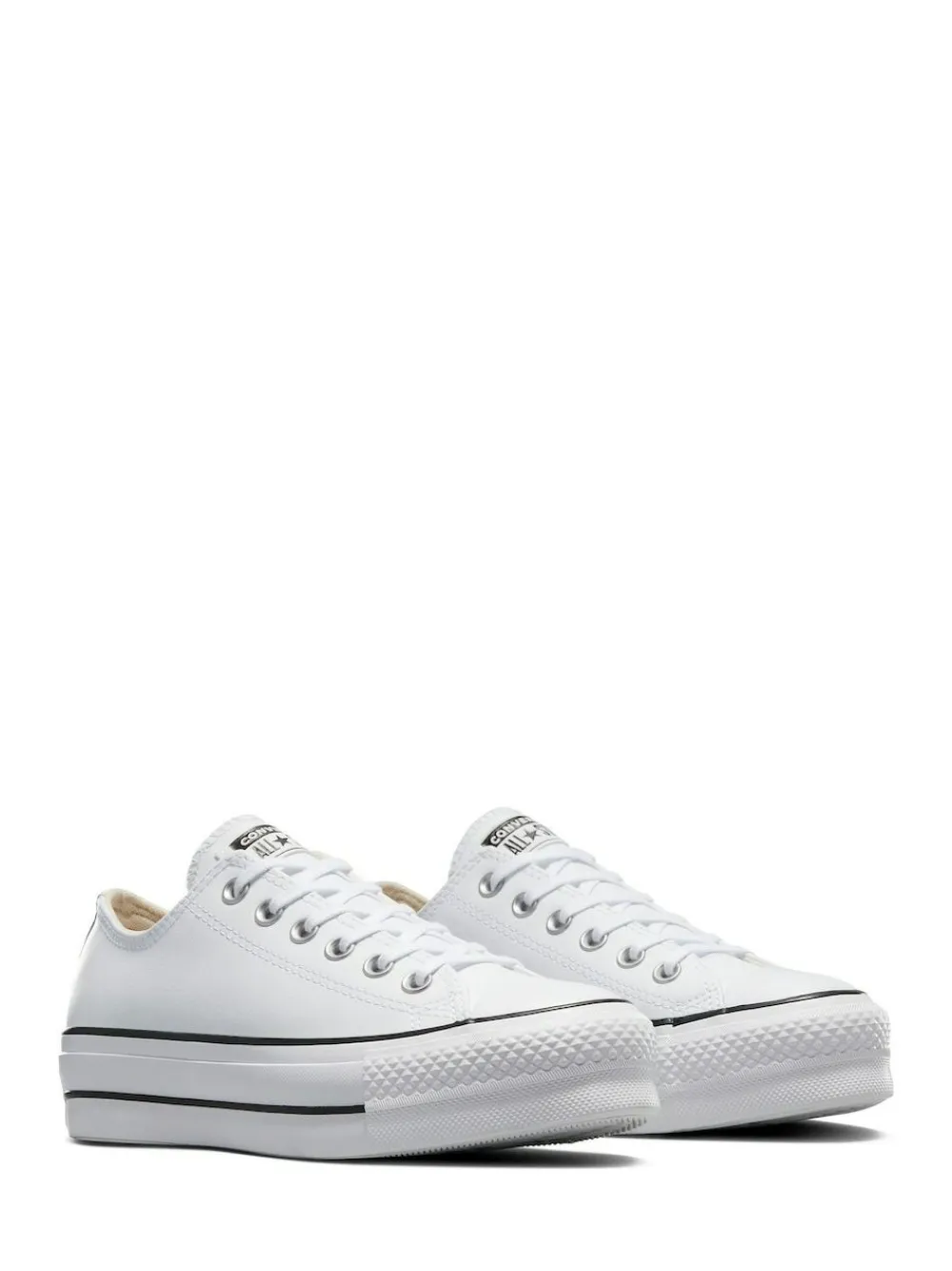 UP HIGH. A premium, leather upper elevates the iconic, low-top look, while a double-stacked sole takes it higher. With classic touches, like a woven ‘All Star’ tongue label, plus a license plate on the heel. EVA cushioning keeps it comfortable. Get lifted. Featuring leather upper, elevated platform sole for added height and lace-up style for an adjustable fit. Upper – Textile, Lining and Sock – Textile, Sole – Other Materials.