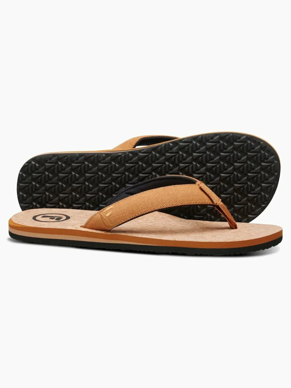 EVA foam, the FoamLife men’s Mully Cork flip flops also feature a natural cork top layer, a padded Hemp canvas strap, and a super comfy toe post, the ultimate in comfort. EVA Soft to Step foam with cork top layer EVA-branded traction outsole Raised arch support for comfort Padded Hemp & cotton canvas upper strap with embroidered logo Cotton lining on the upper strap Soft webbing toe post, hemp & cotton canvas printed label Main – 48% Other fibres, 47% Cotton, 5% Polyester. Lining – 100% Plastic. Sole – 90% EVA, 10% Polyester.