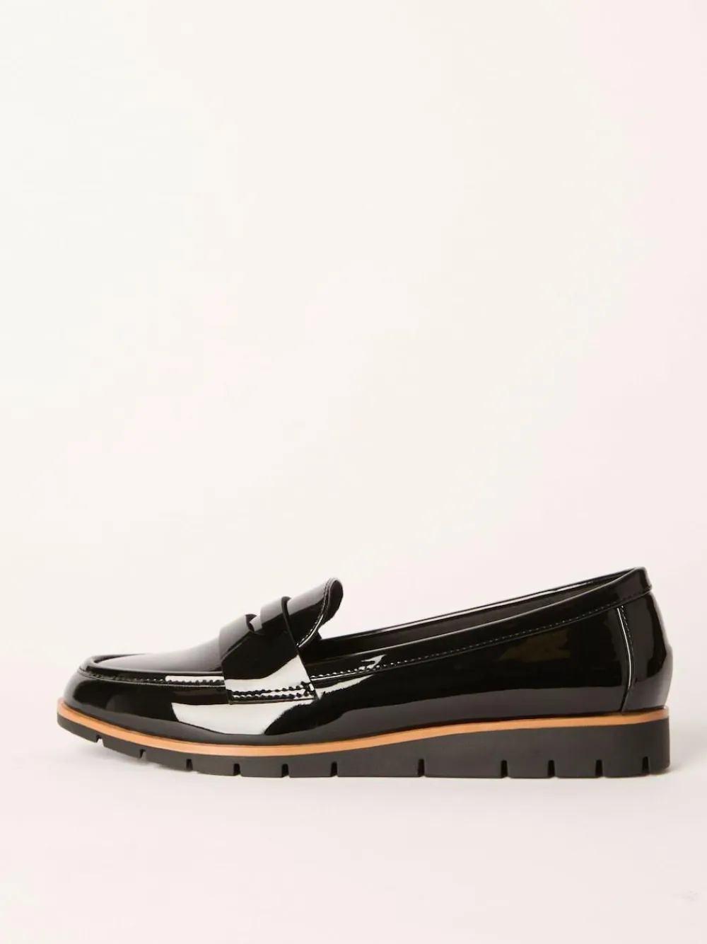 A classic slip on loafer style. Designed with a comfortable low wedge and a contrast rand style. Perfect for your workwear wardrobe. Featuring: Slip on design. Contrast rand design. Low Wedge. Chunky Sole. Faux Leather. Upper – Other Materials, Lining & Sock – Textile, Other Materials, Sole – Other Materials.