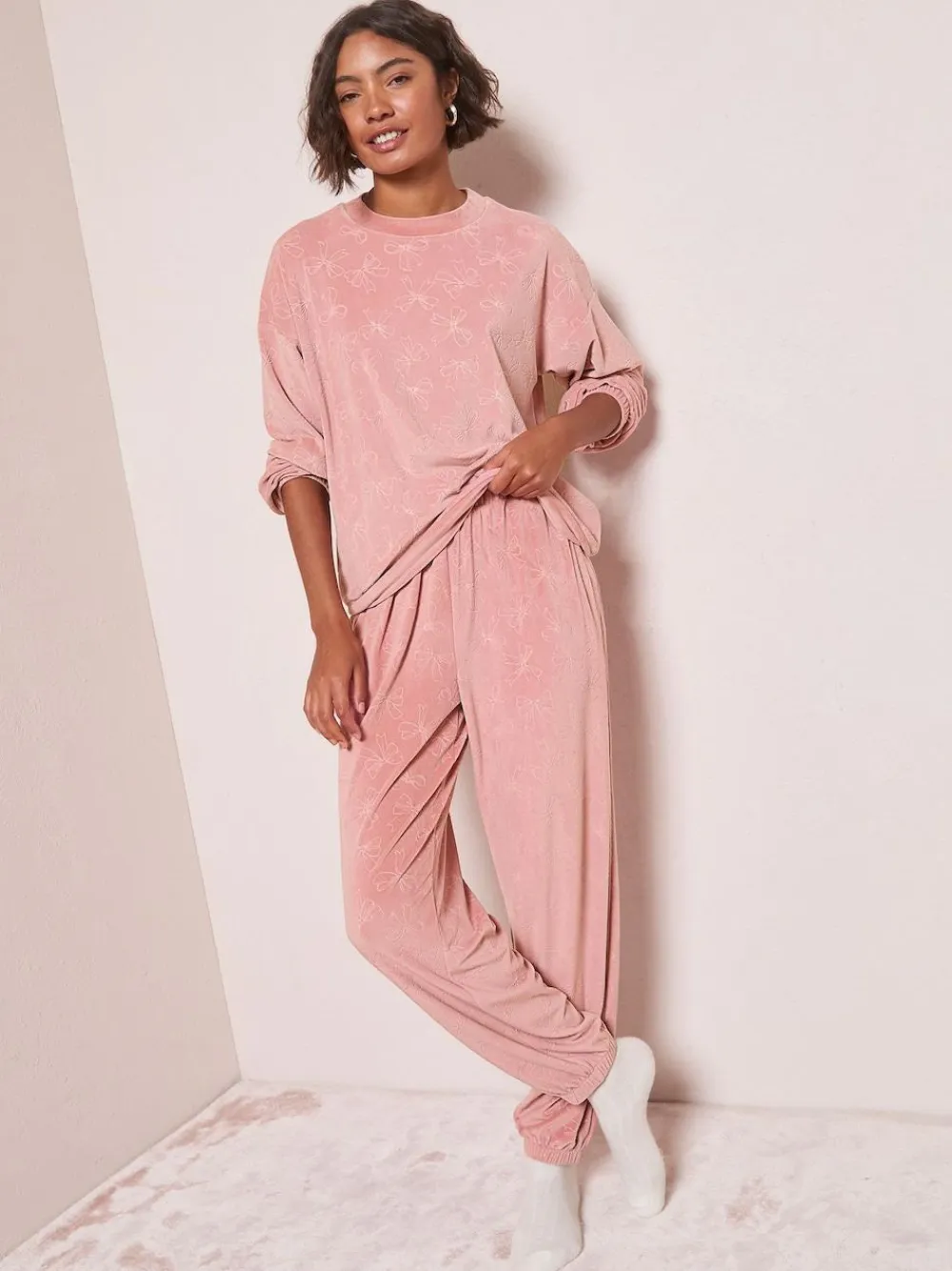 Outlet Friends Like These Pink Bow Embossed Long Sleeve Pyjamas