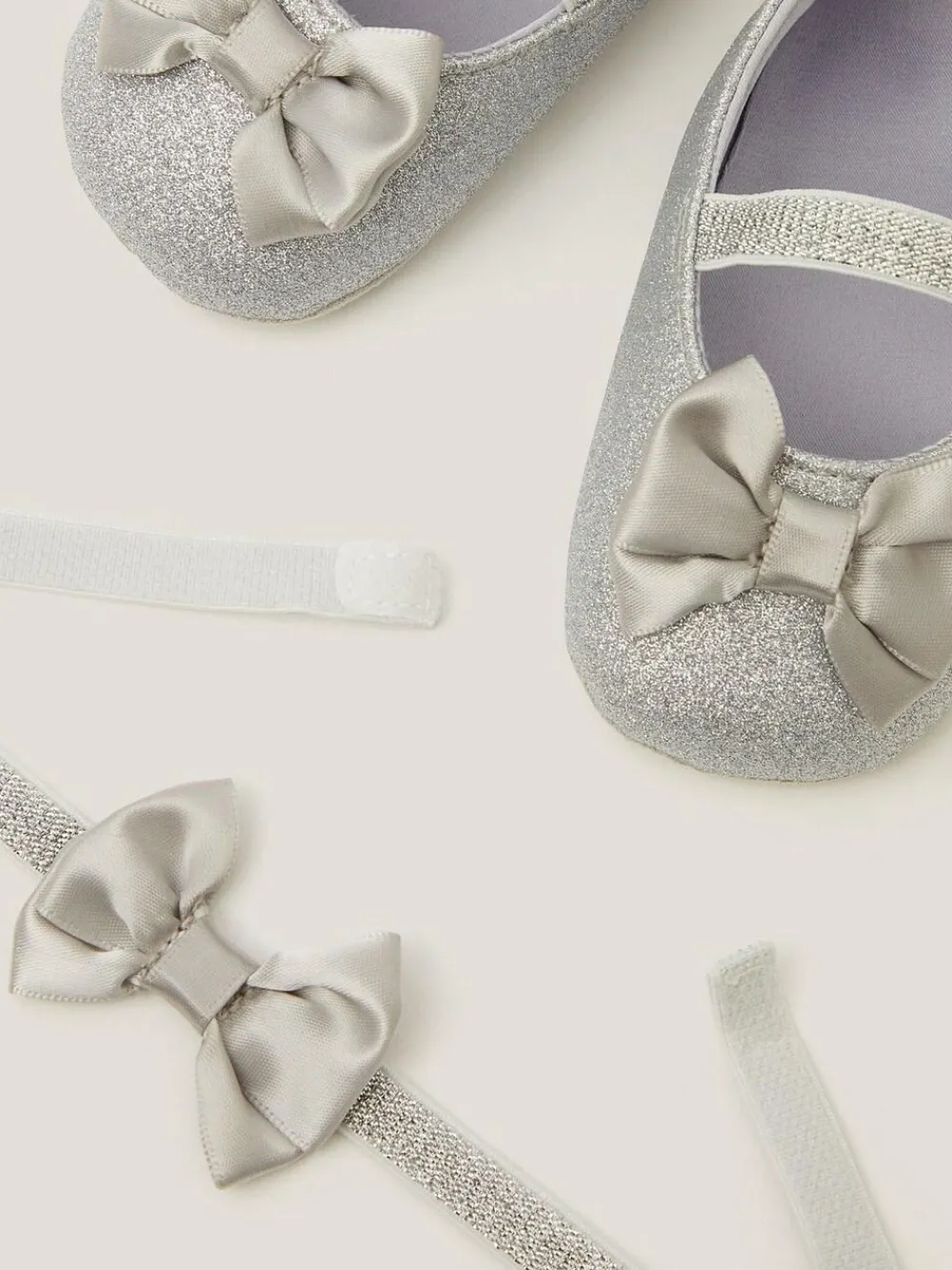 Be the first to review “Outlet Monsoon Baby Bow Glitter Booties & Headband Set Silver” Cancel reply